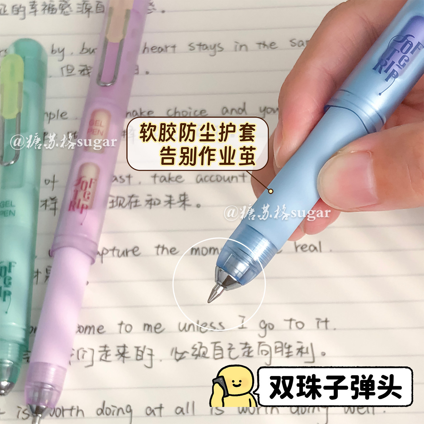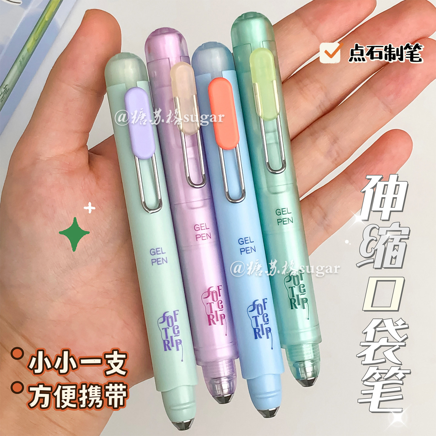 点石制笔可伸缩中性笔口袋笔ins高颜值速干双珠0.5学生黑色刷题笔