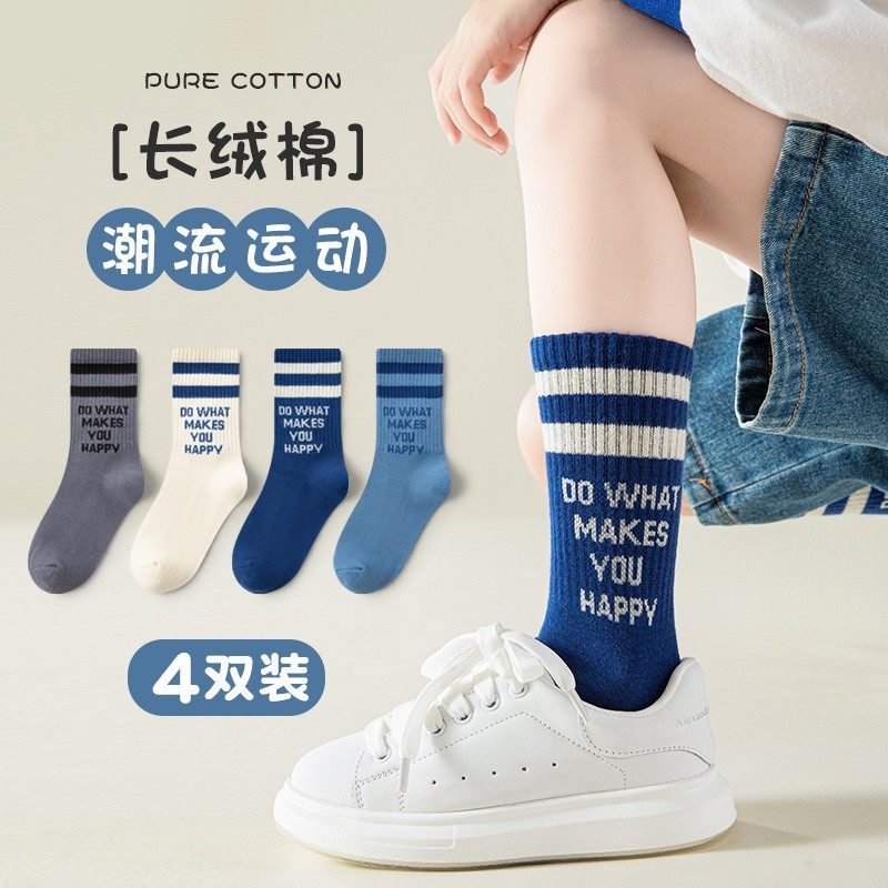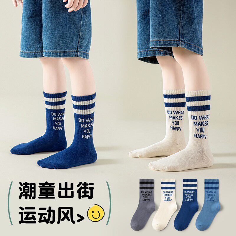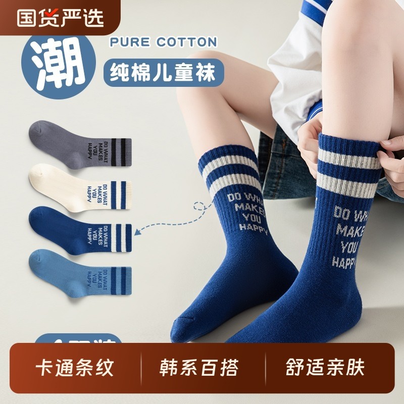 男童袜子秋冬季加厚款字母条纹中大童中长筒保暖运动儿童长袜高筒