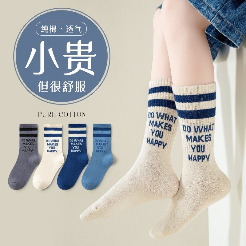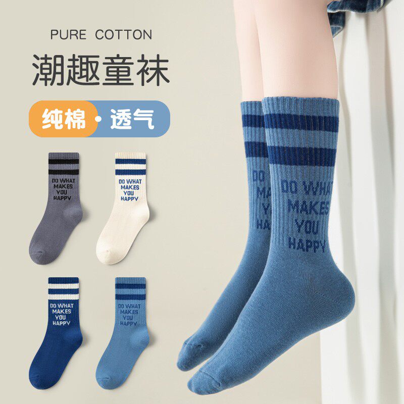 纯棉童袜春秋款夏季薄款防臭不起球男女袜子全棉中筒袜时尚儿童袜