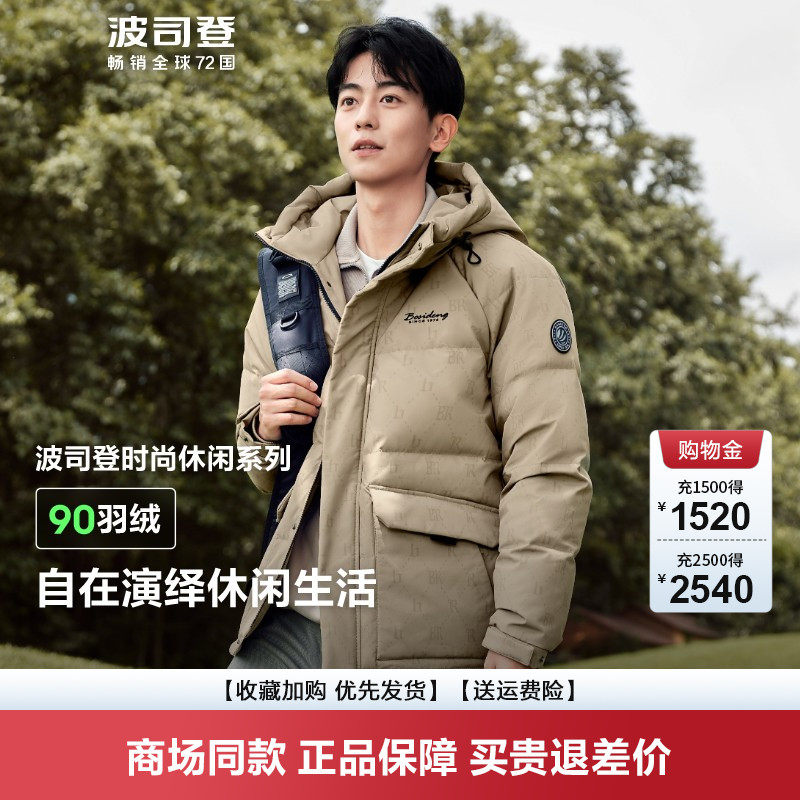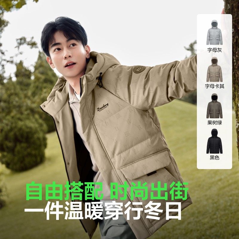 波司登羽绒服男冬季爆款连帽时尚休闲工装风情侣款老花厚外套