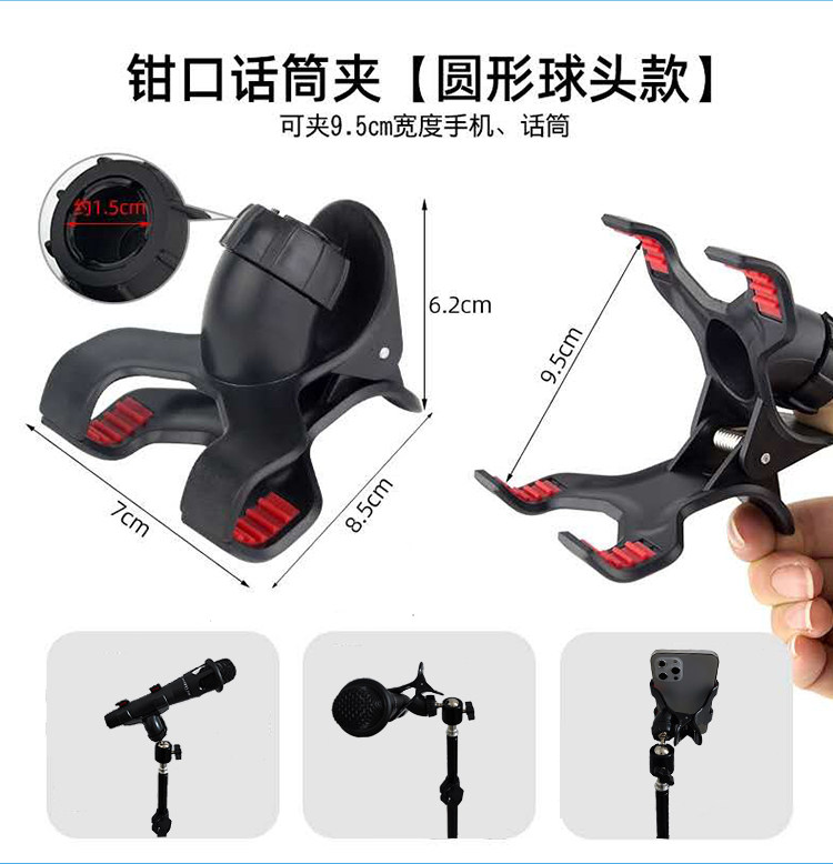 手机夹子固定器懒人直播支架替换头配件大全自拍杆专用软管17mm万向球头折叠屏平板一字夹头车载万能通用零件