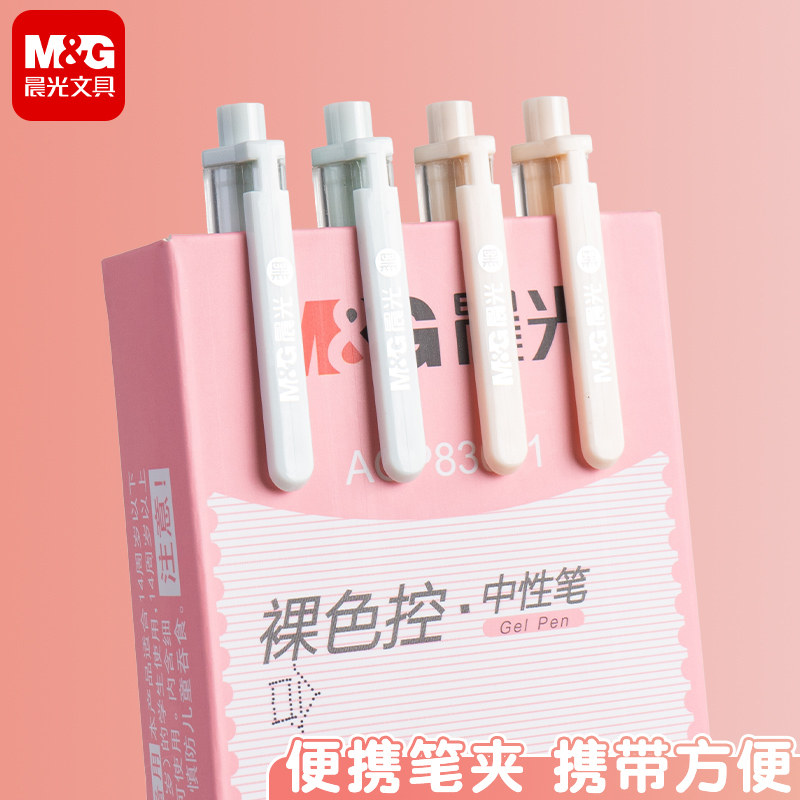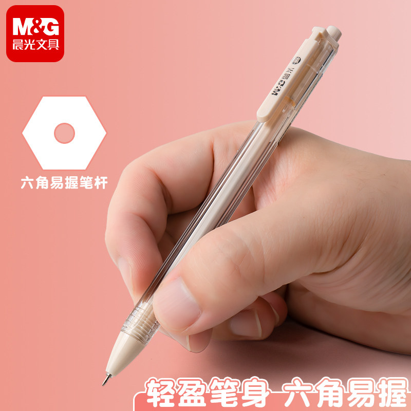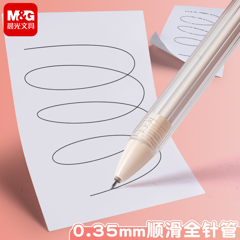 晨光0.35中性笔全针管裸色控按动水笔高颜值超细女生款可爱创意黑色签字笔ins冷淡风笔芯AGP83001开学文具