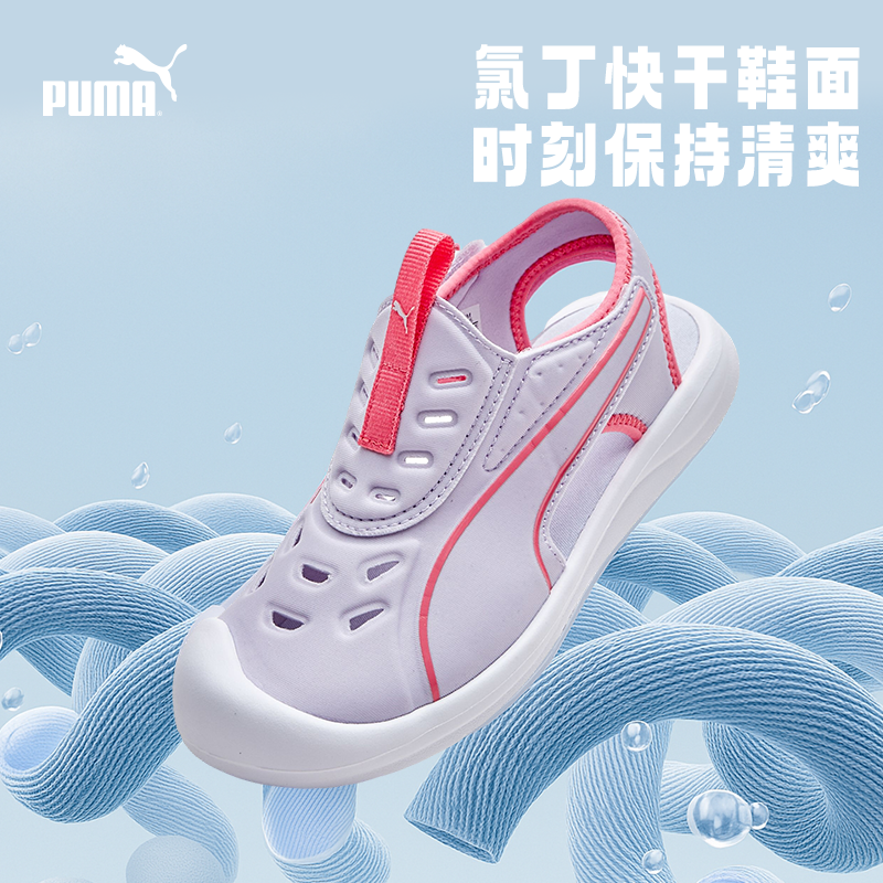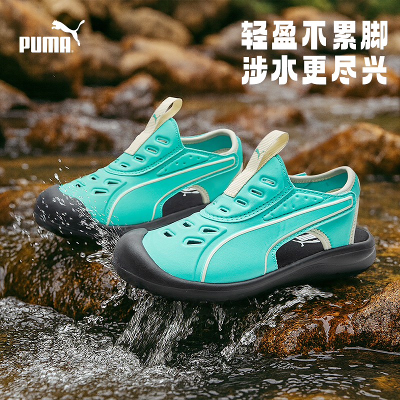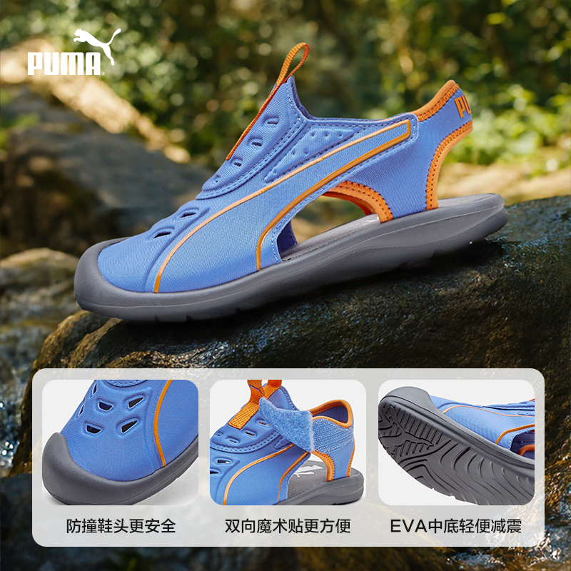 PUMA彪马官方正品童鞋中童魔术贴拖凉鞋软底沙滩防滑撞色包头凉鞋