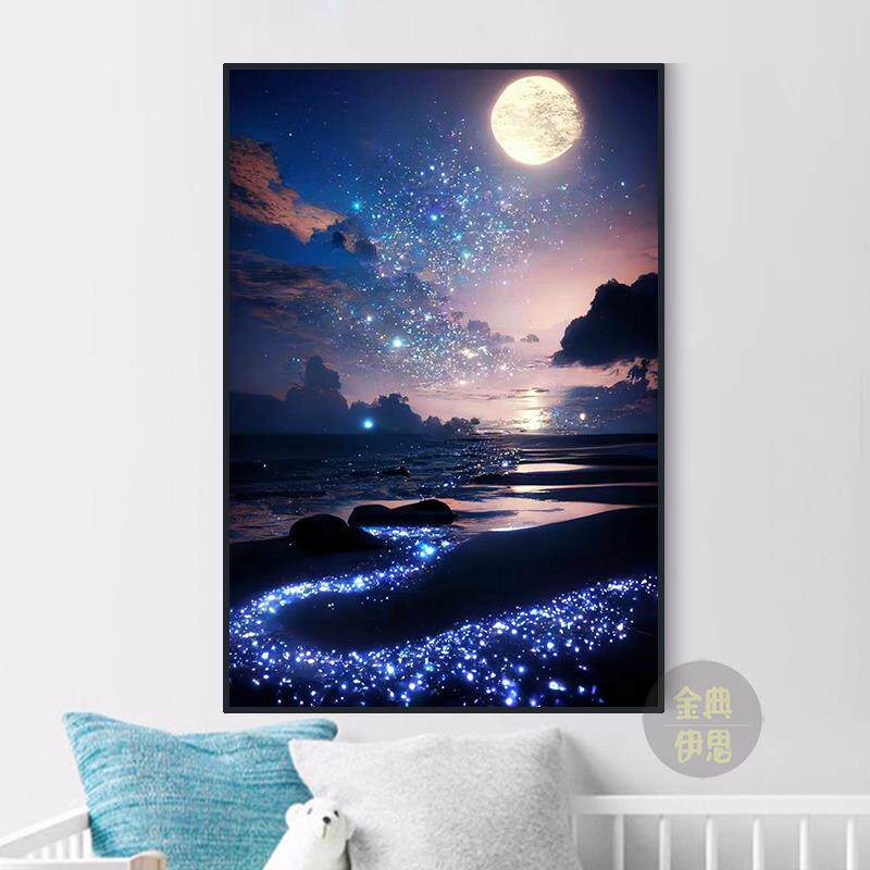 7L8K唯美风景钻石画2024新款浪漫星空月亮5d点贴钻十字绣客厅卧室