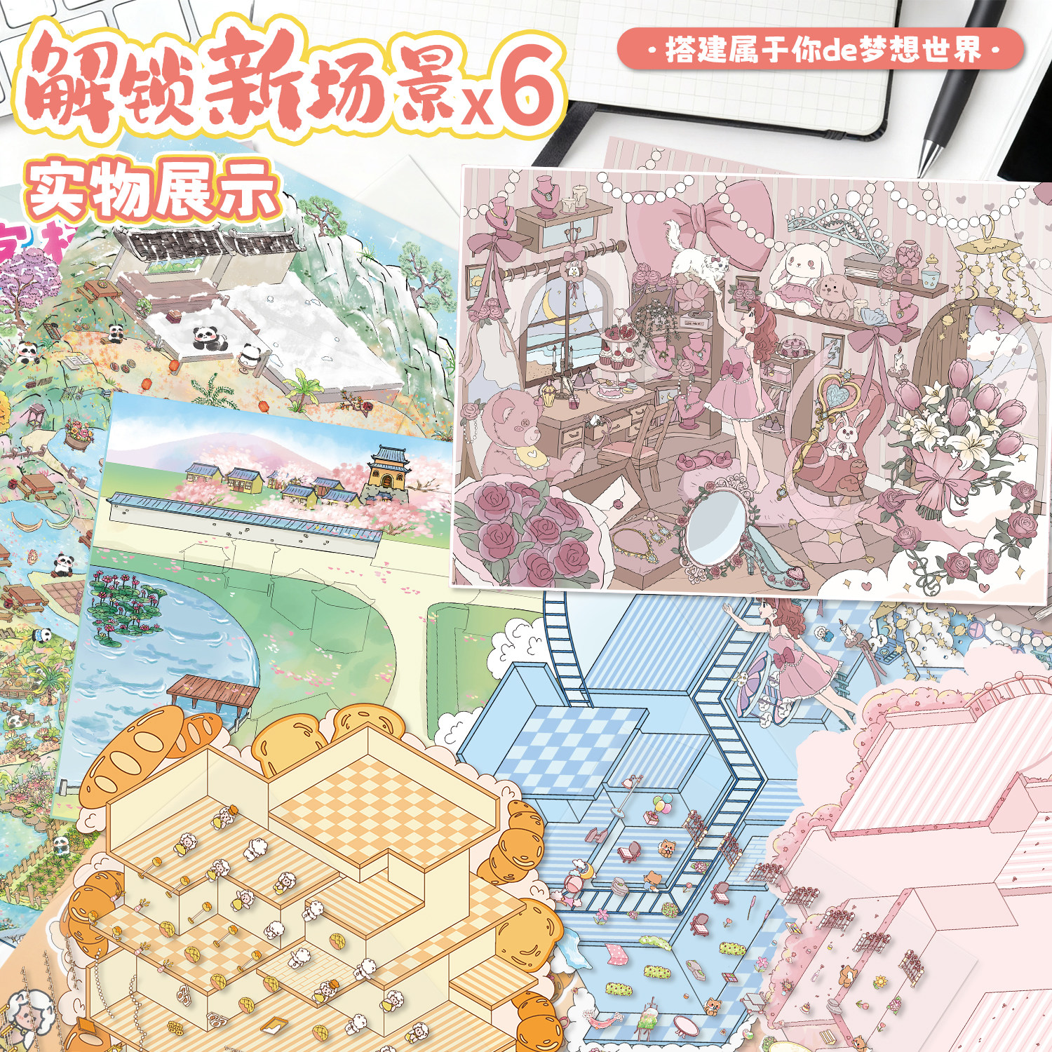 新款筑梦3d立体造景贴纸微缩场景合集本 大号版diy手工小屋手账贴儿童益智玩具素材贴画解压大版3D手账装饰贴
