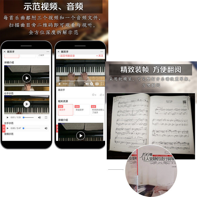 100首让人安静的流行钢琴曲微课精讲版五线谱流行歌曲大全成人少儿童初学者入门教程材电子琴谱双手经典练习曲带指法视频