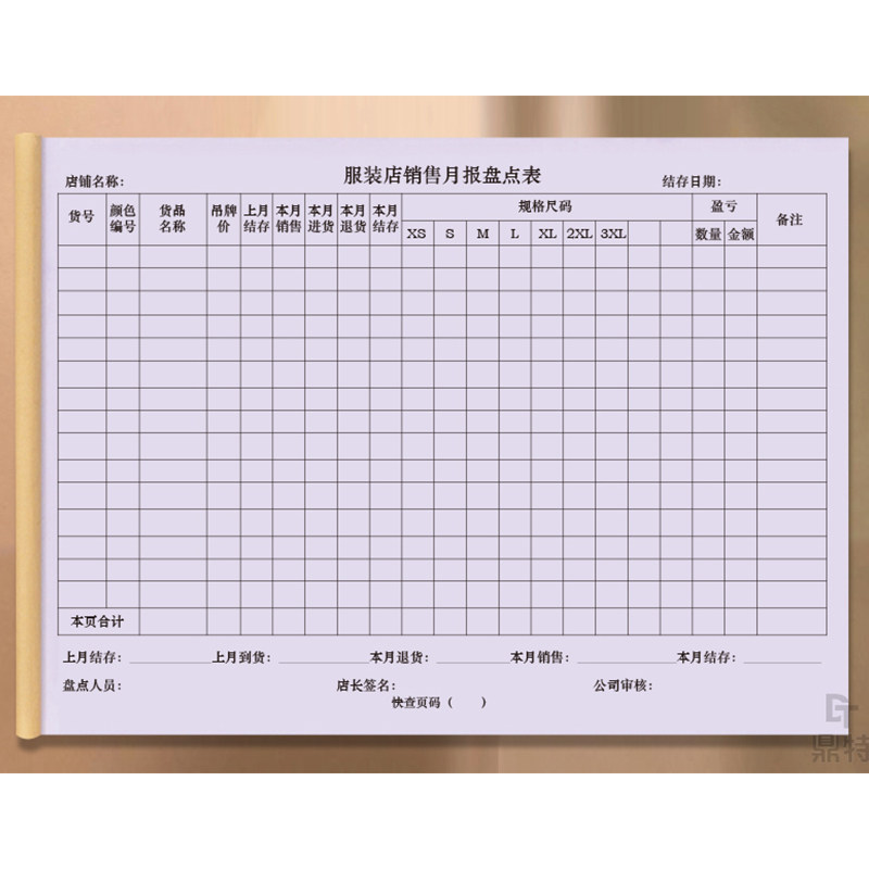 服装盘点表商场店铺服装店鞋店专柜货物盘点表销售日报表仓库库存明细商品进货记录本登记册每日交接本册台账