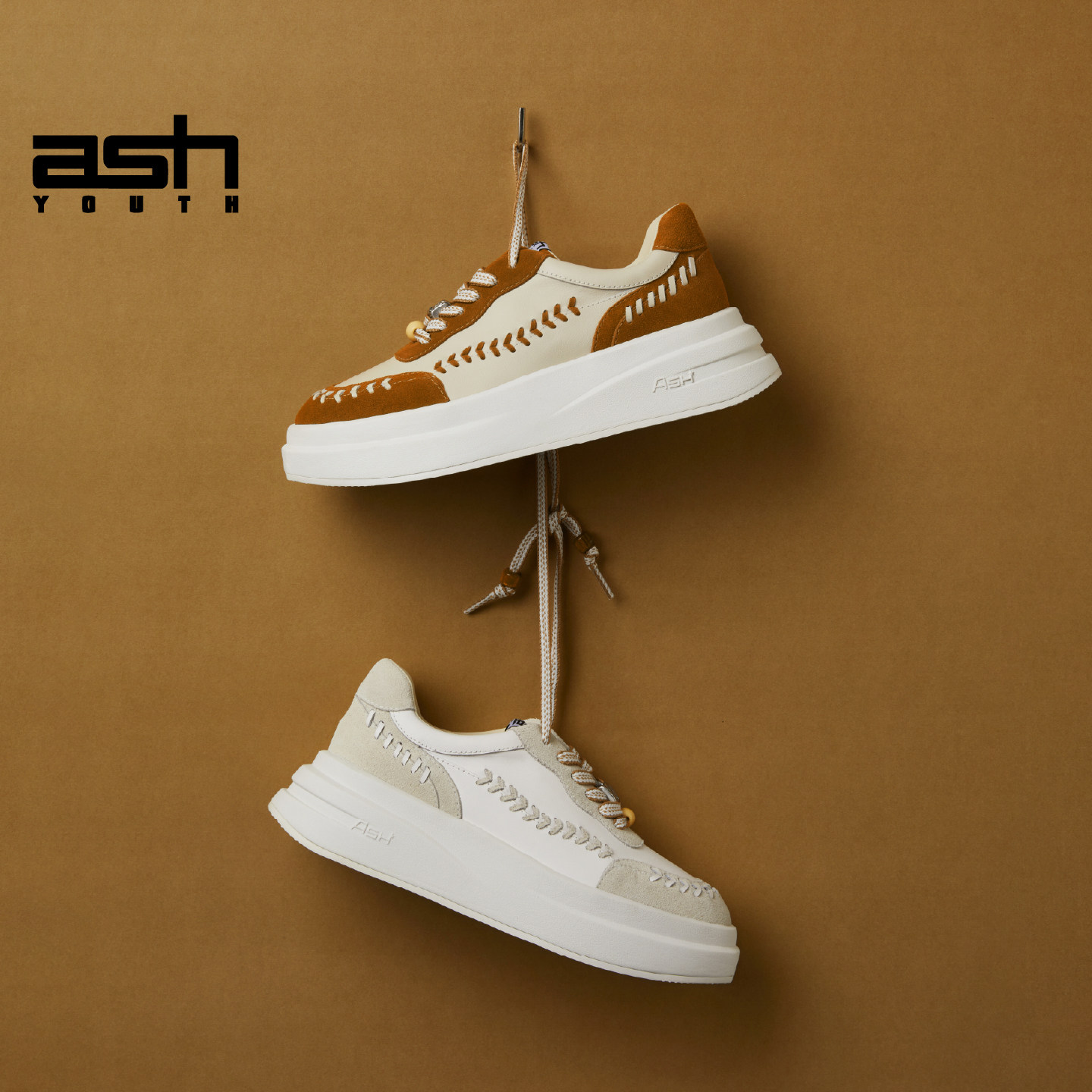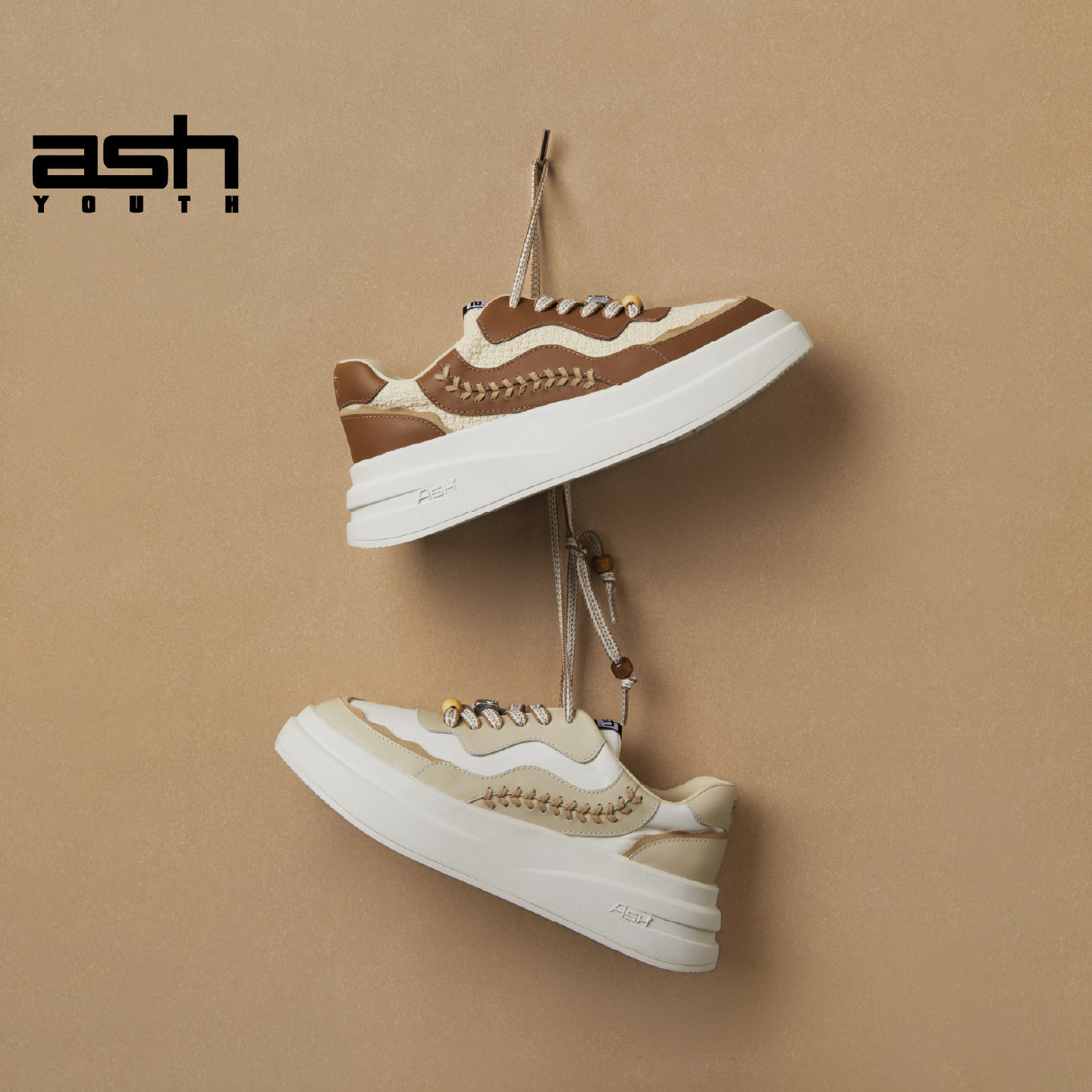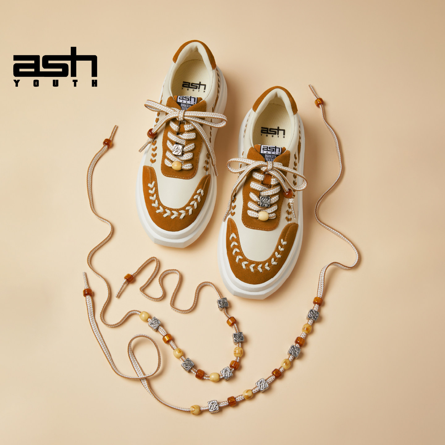 ASH YOUTH「云织」游牧风编织串珠系带厚底增高新春真皮小白鞋女