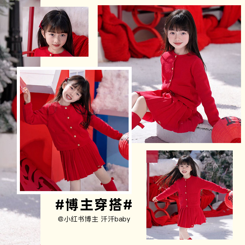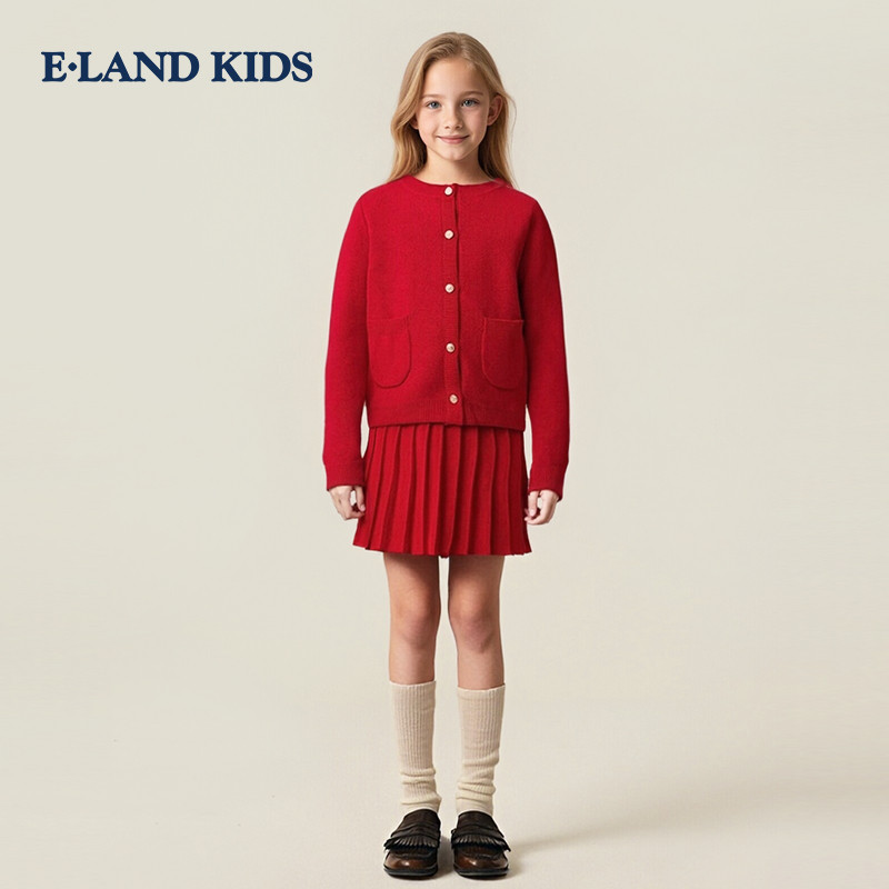 【绵羊毛混纺】eland kids衣恋童装女童针织套装25年秋冬半身裙