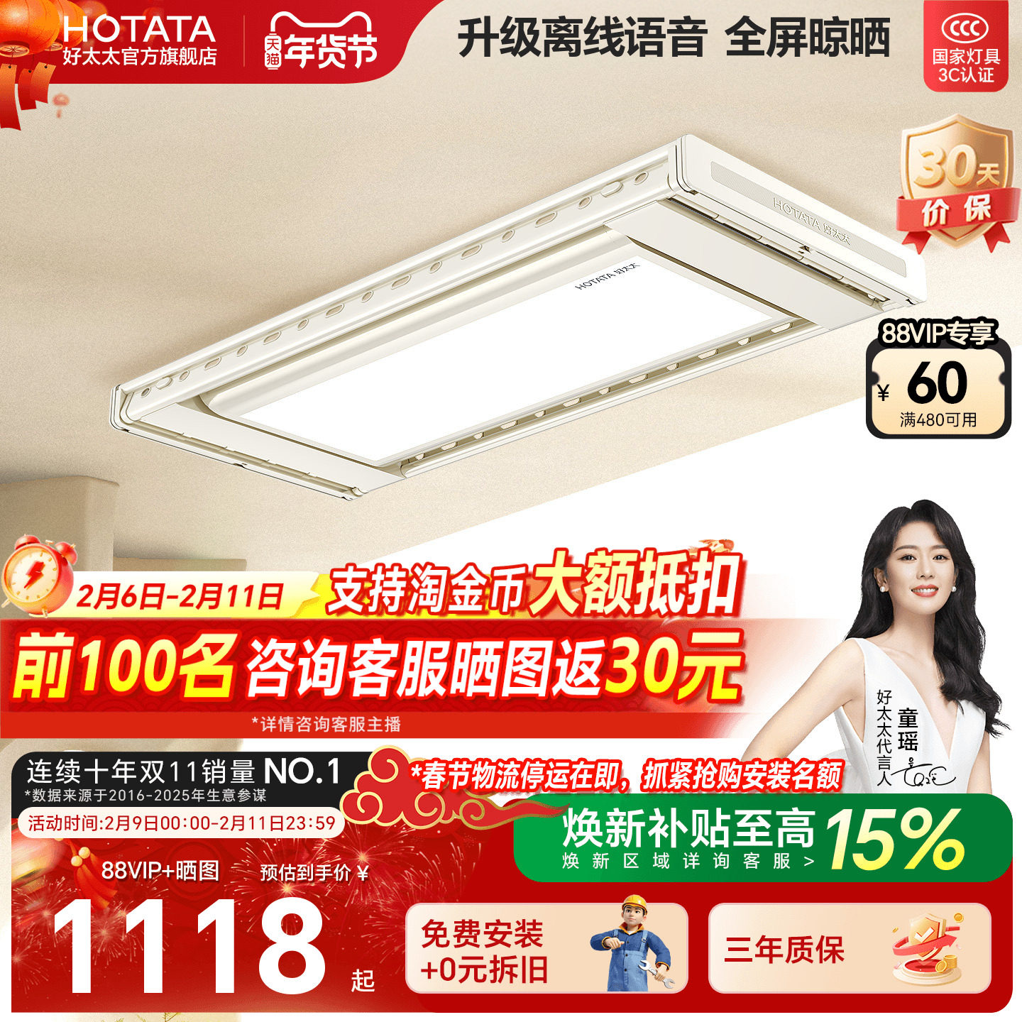 太太乐智能电动晾衣架家用遥控自动升降阳台灯型隐藏嵌入式晒衣杆
