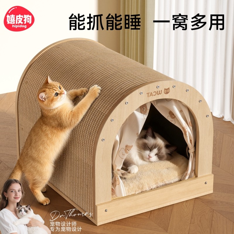 猫窝冬季保暖猫抓板实木剑麻玩睡一体不掉屑超大号猫抓窝四季通用