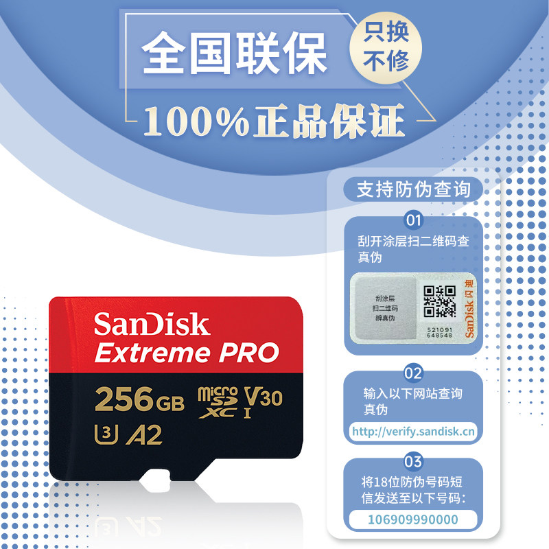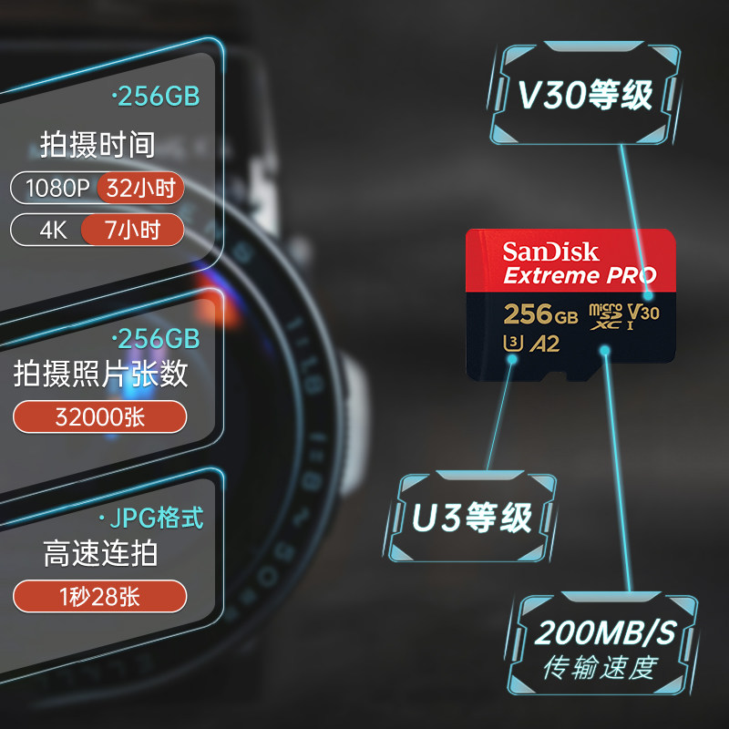 闪迪tf卡256g内存卡高速sd卡监控无人机大疆pocket3内存卡存储卡