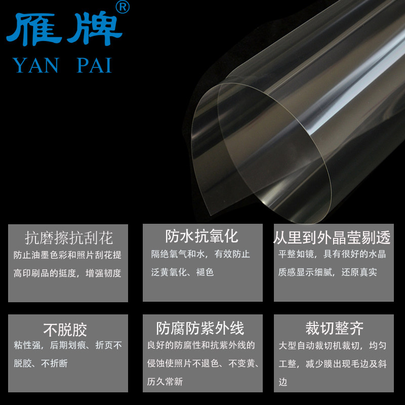 雁牌110低温55度热裱钢化水晶膜PET钢化水晶膜影楼后期热裱膜无框画晶瓷画装饰画照片热裱高光水晶膜
