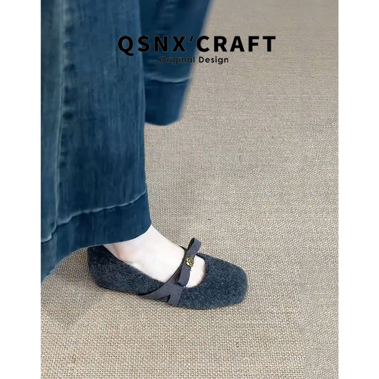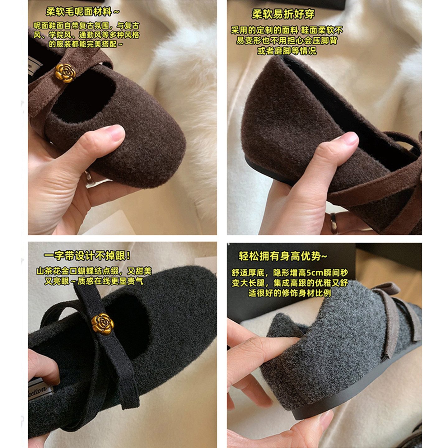 羊皮版复古玛丽珍鞋女方头秋冬季加绒保暖毛毛棉鞋平底晚晚单鞋女