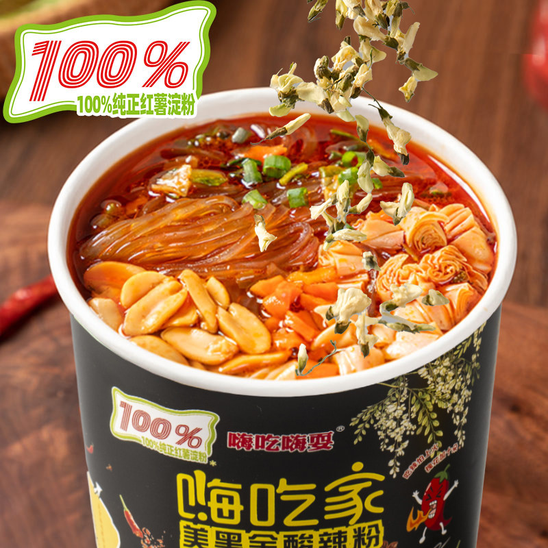嗨吃家美黑金槐花酸辣粉重庆桶装香辣酸爽正宗方便面速食