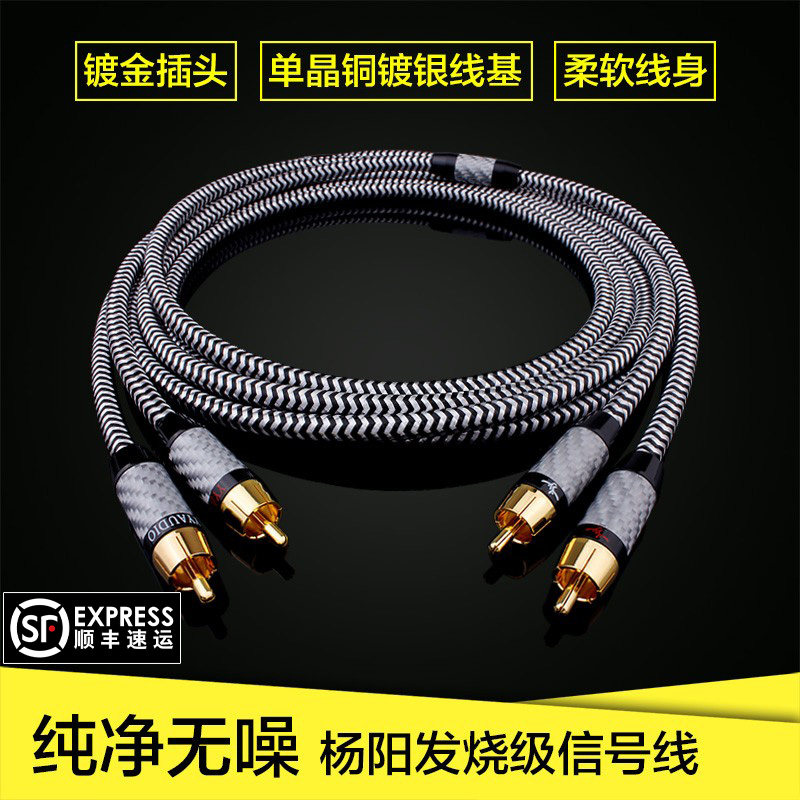 杨阳 RCA双莲花头音频信号线音响发烧单晶铜镀银二对二功放连接线