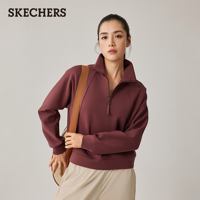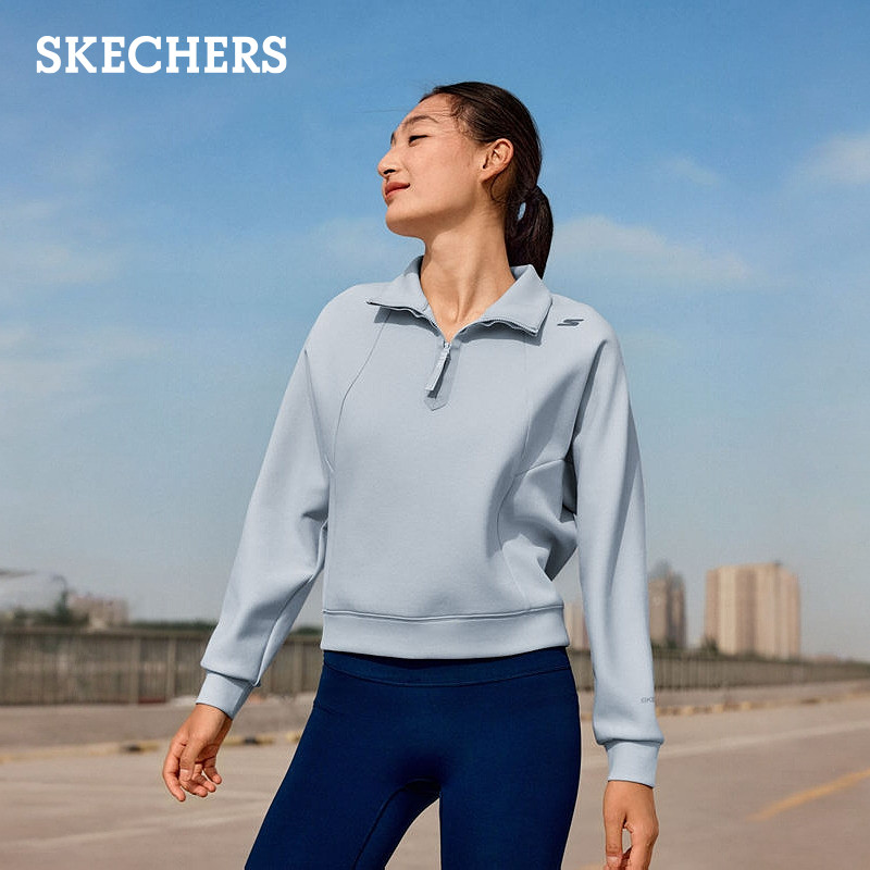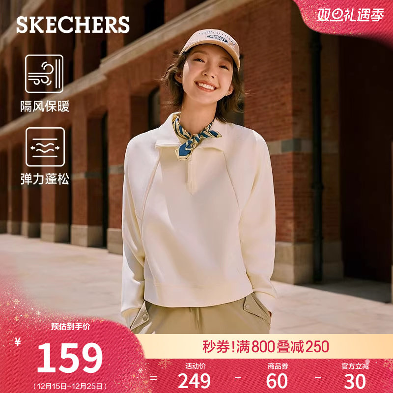 斯凯奇2025秋冬新品女短款套头卫衣休闲运动服隔风保暖POLO外套