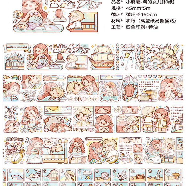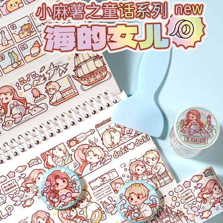 新品小麻薯胶带海的女儿童话系列全套整卷秋冬限定手帐本贴纸手账套装pet手杖交代官方店新款奶盖熊奶盖小镇
