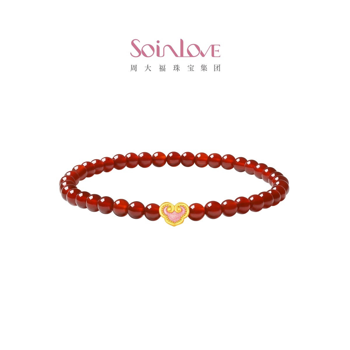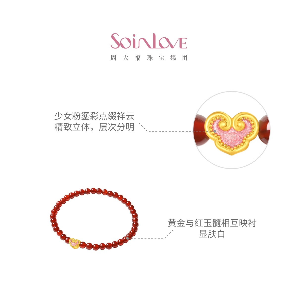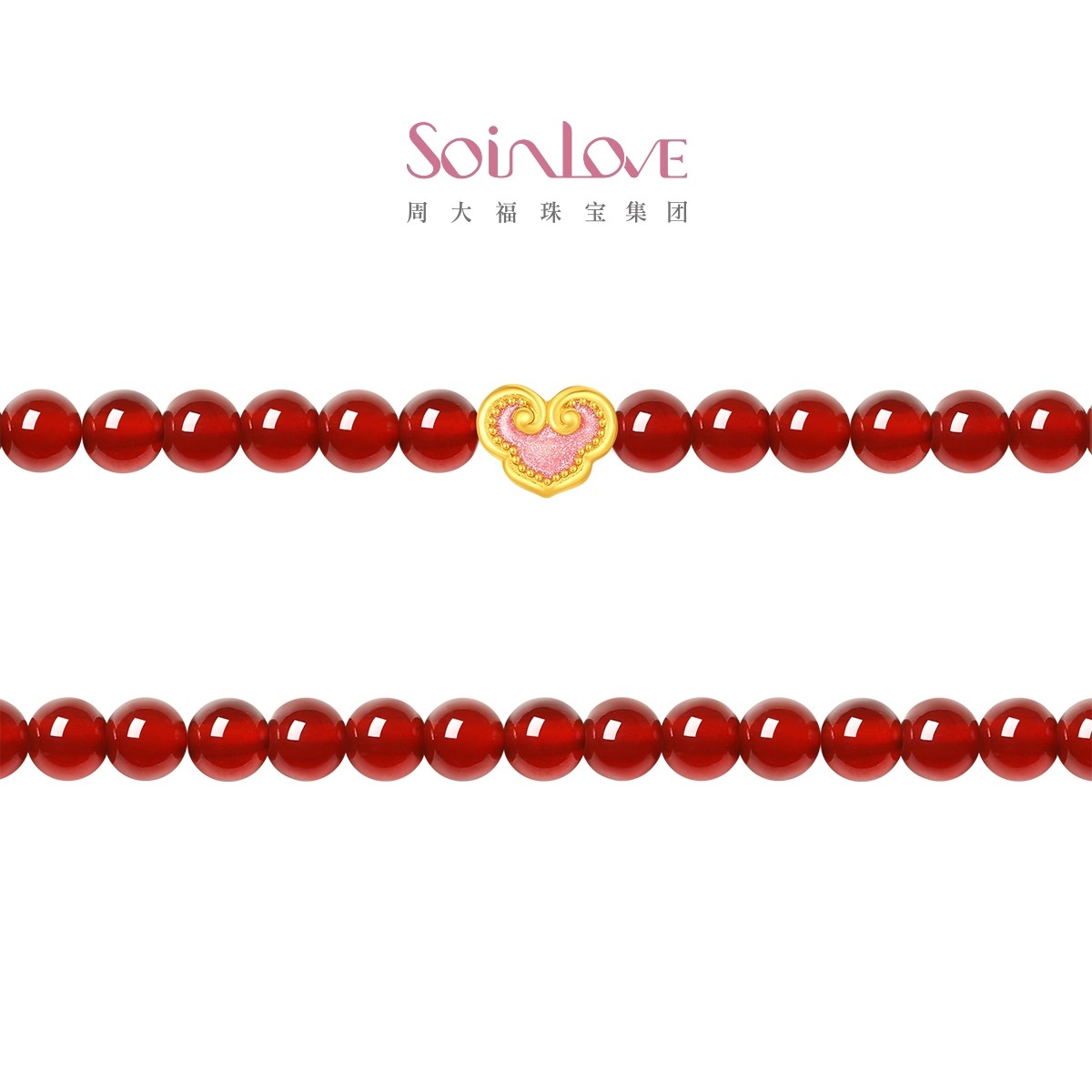 周大福SOINLOVE蜜粉金十里红妆祥云如意黄金红玉髓手串手链VR1615