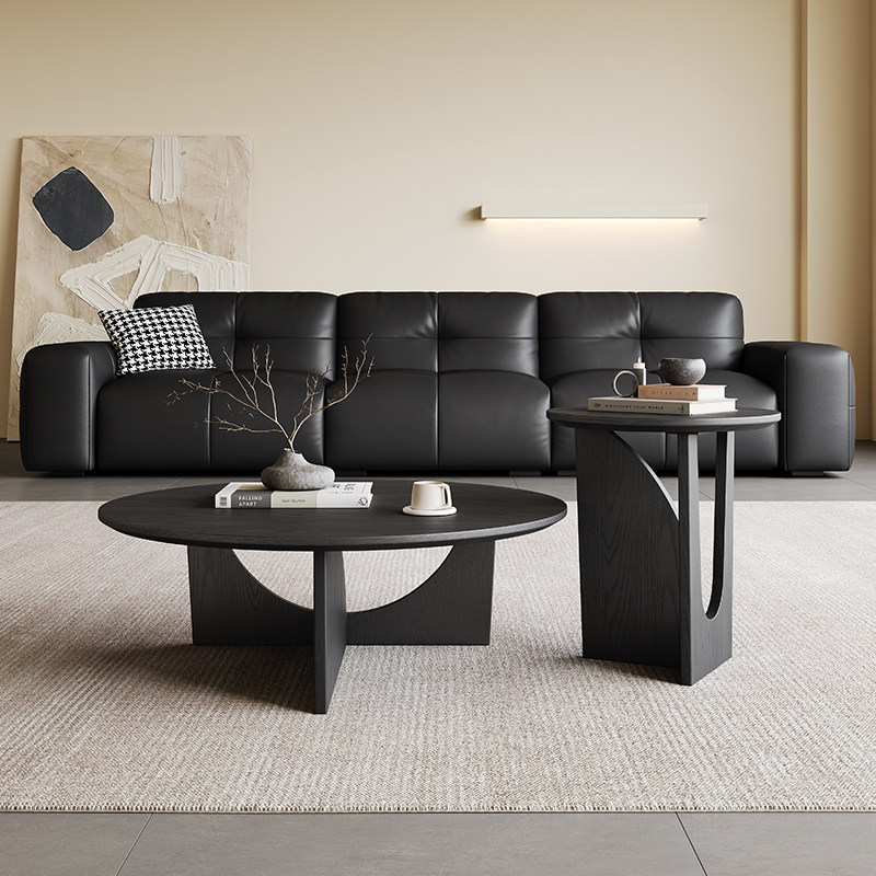 中古风实木茶几客厅家用设计师2025新款轻奢黑色大小圆茶几组合