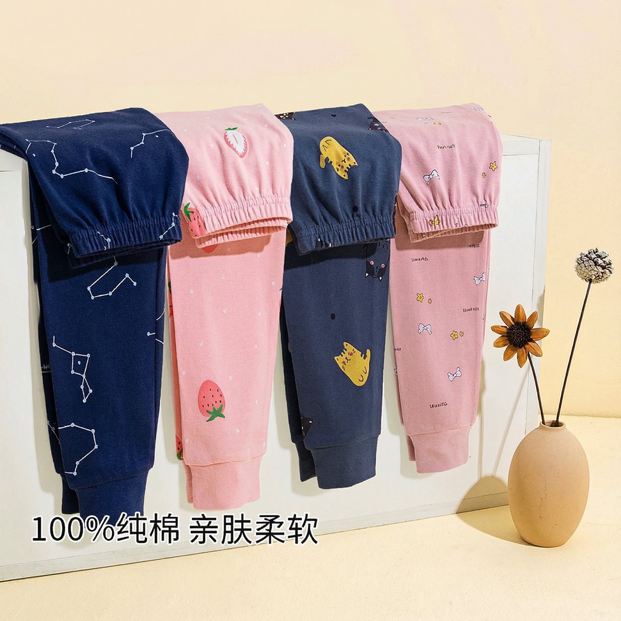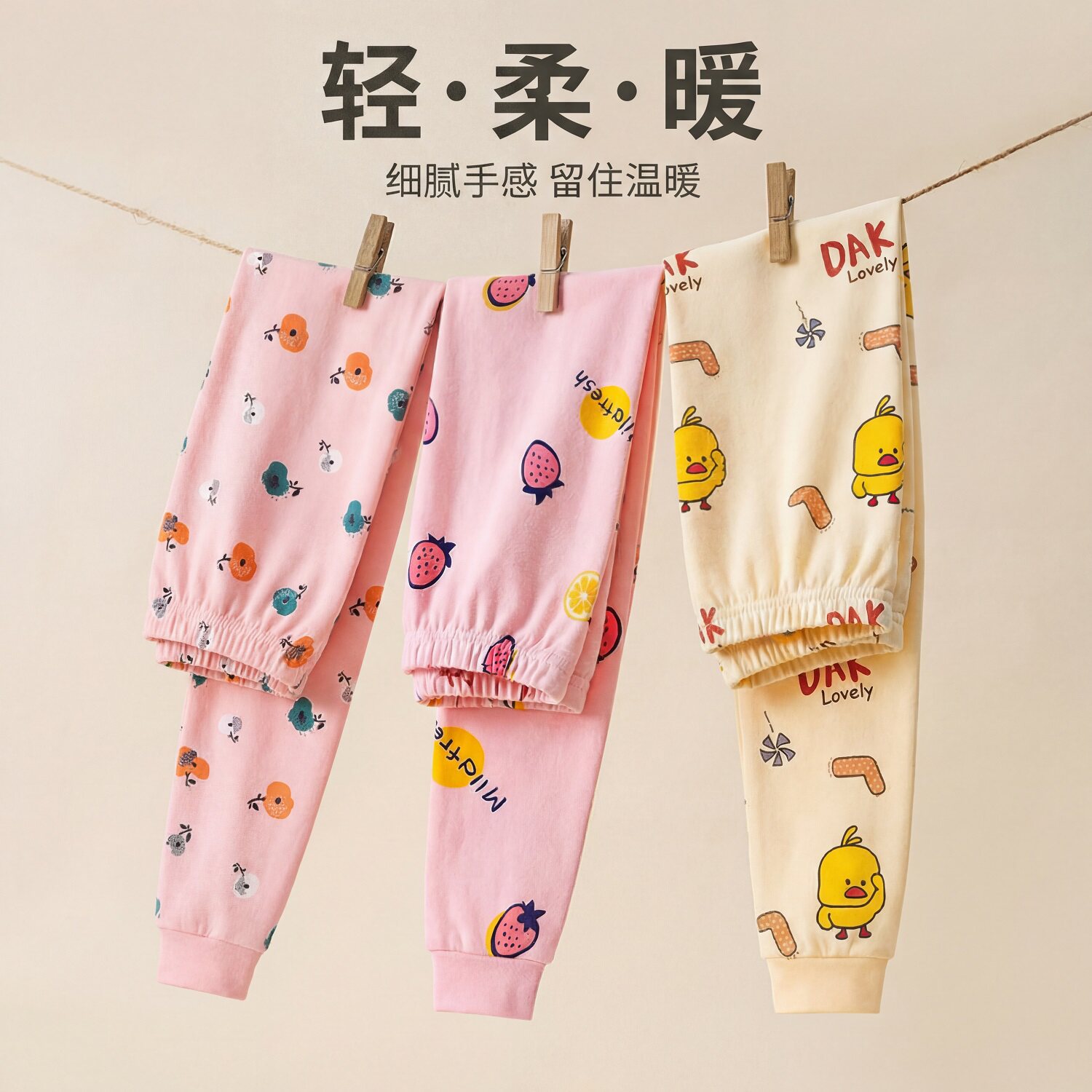 儿童秋裤女童打底裤纯棉宝宝睡裤男孩线裤薄款棉毛裤春秋冬保暖裤