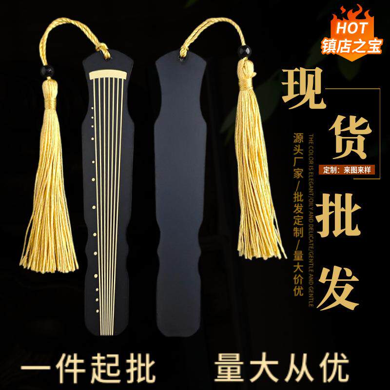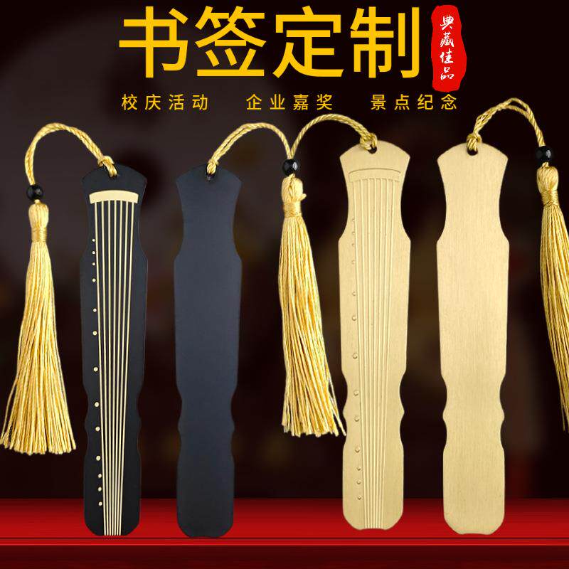 新款直销专业制作电泳黑黄铜古琴书签中国风礼物复古金属礼品国风