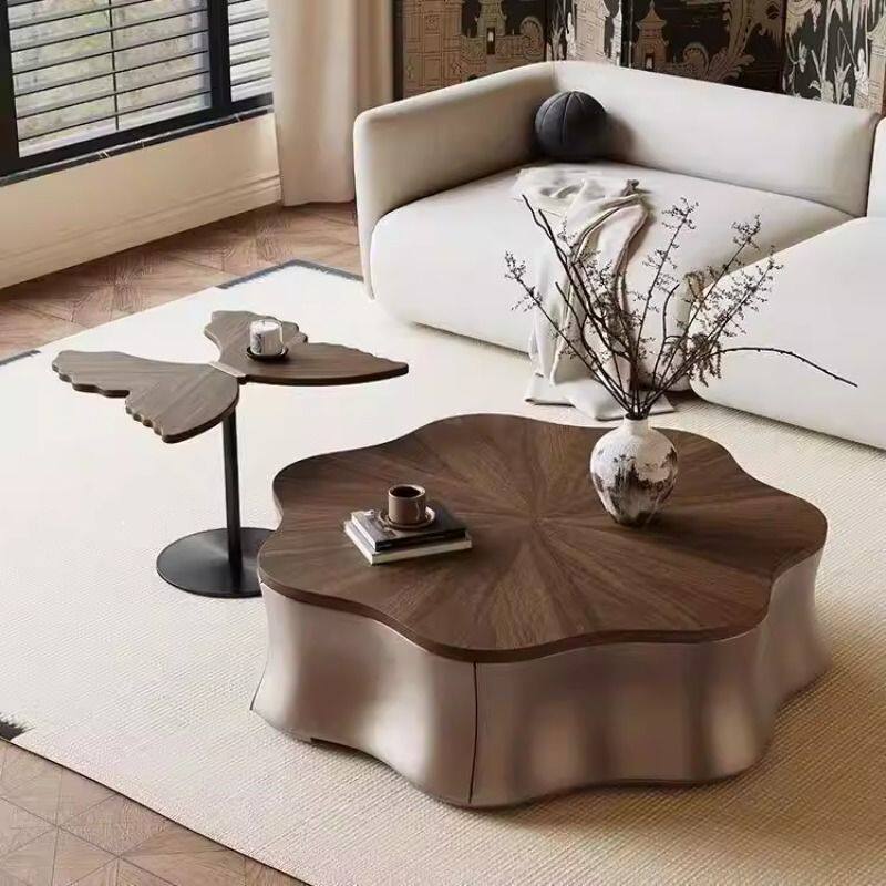 意式极简异形实木睡莲茶几客厅家用设计师款现代简约花瓣茶几组合