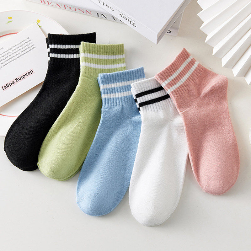 袜子女春夏季薄款低帮短袜四季潮流条纹双杠运动女袜 4双起多规格