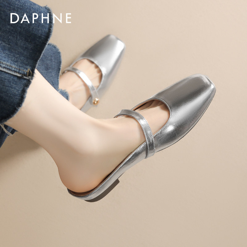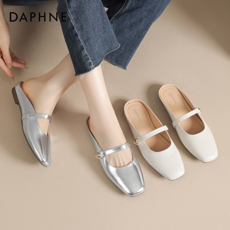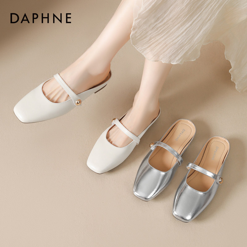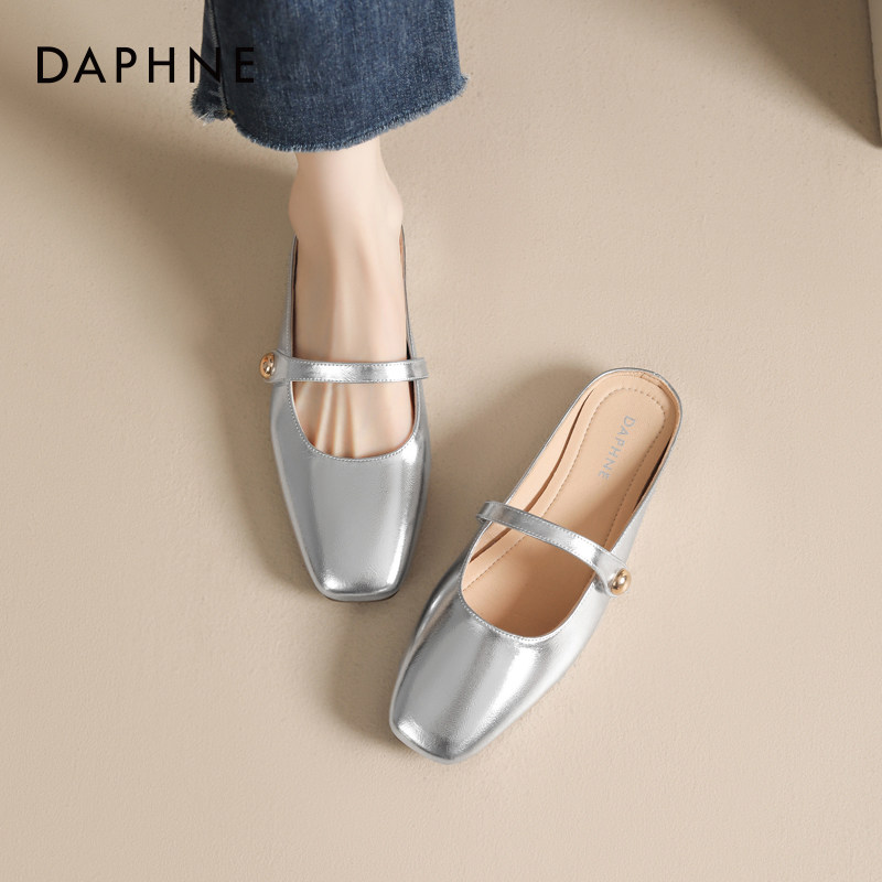 达芙妮银色包头半拖鞋女夏季外穿2026新款鞋拖平底玛丽珍低跟凉拖