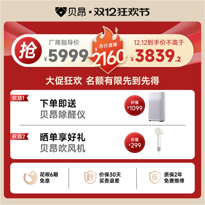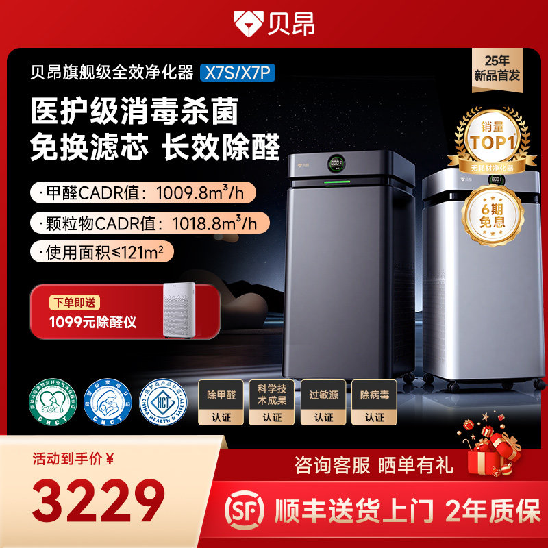 贝昂无耗材空气净化器除甲醛可水洗家用电场分解新房消毒菌机X7P