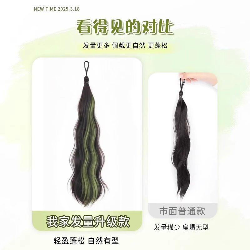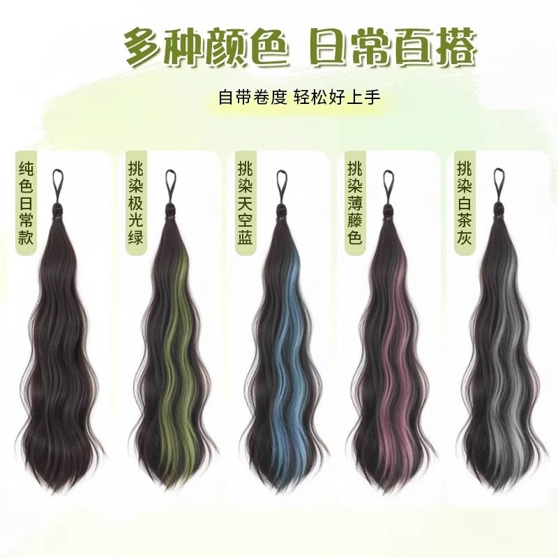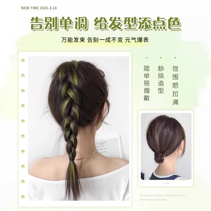 挑染辫子多巴胺假发编发神器马尾发束彩色侧麻花辫增发量长辫发饰