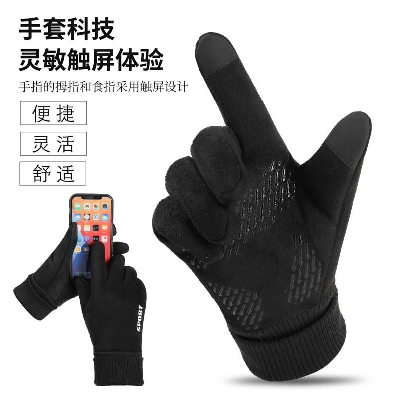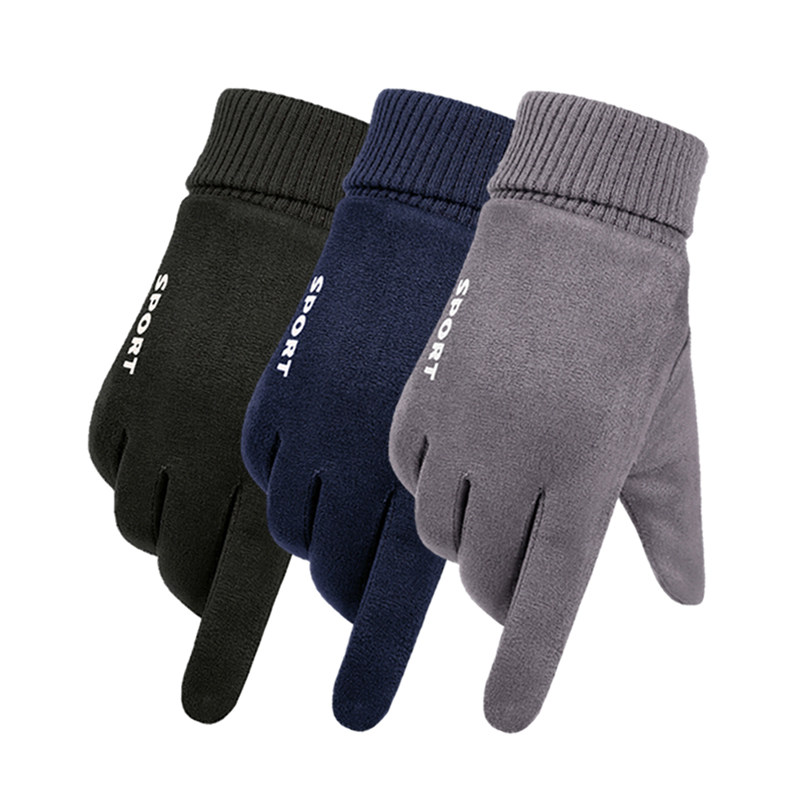 新款冬季保暖手套加绒加厚防寒触屏骑行开车户外运动德绒棉手套