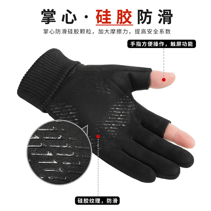 手套男冬季防寒防风保暖加绒触屏骑行开车摩托车外卖半指骑车防滑