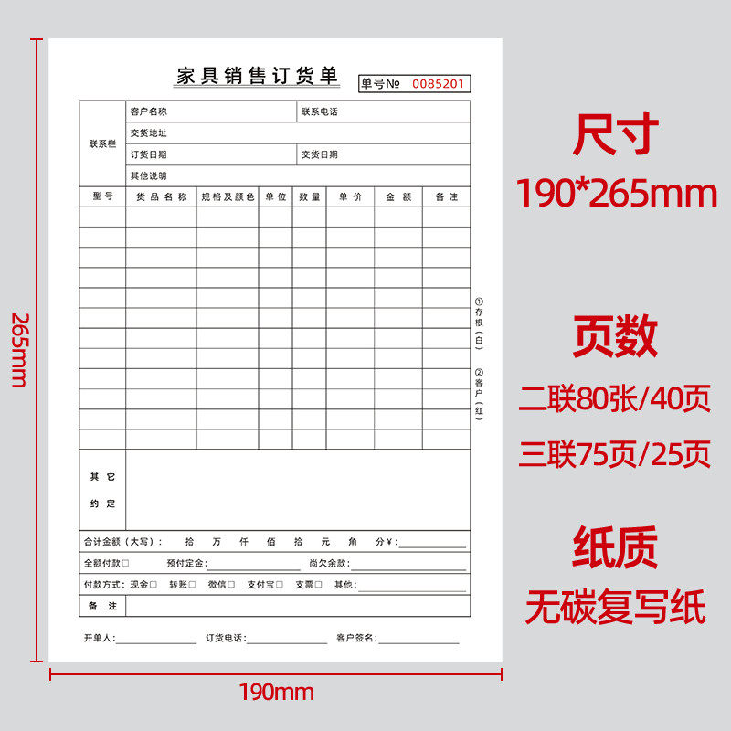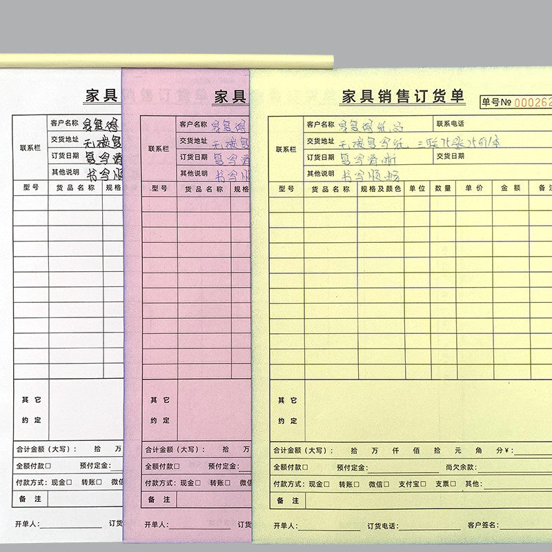 二联三联家具销售订货单2联3联合同家具橱柜全屋木门建材配送清单