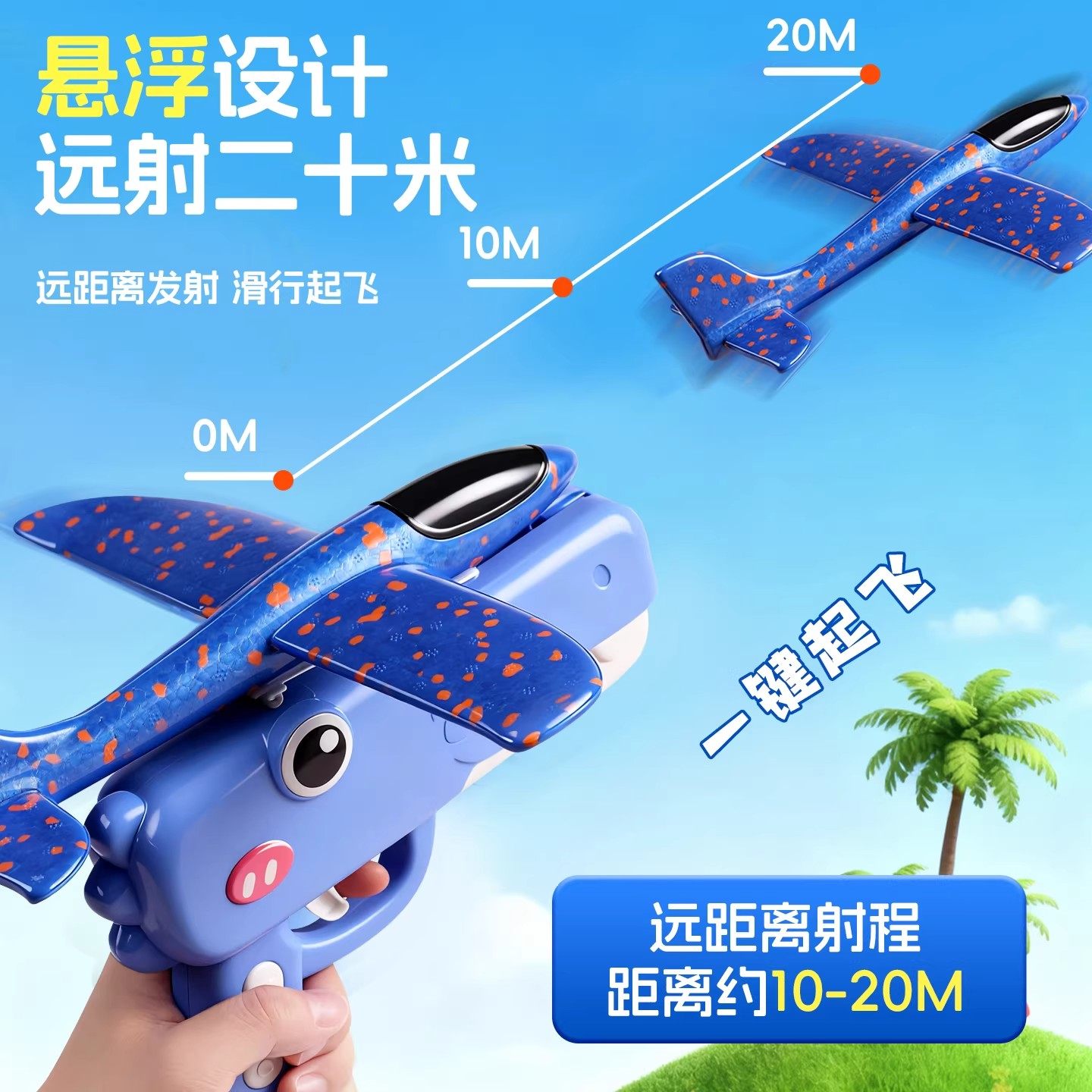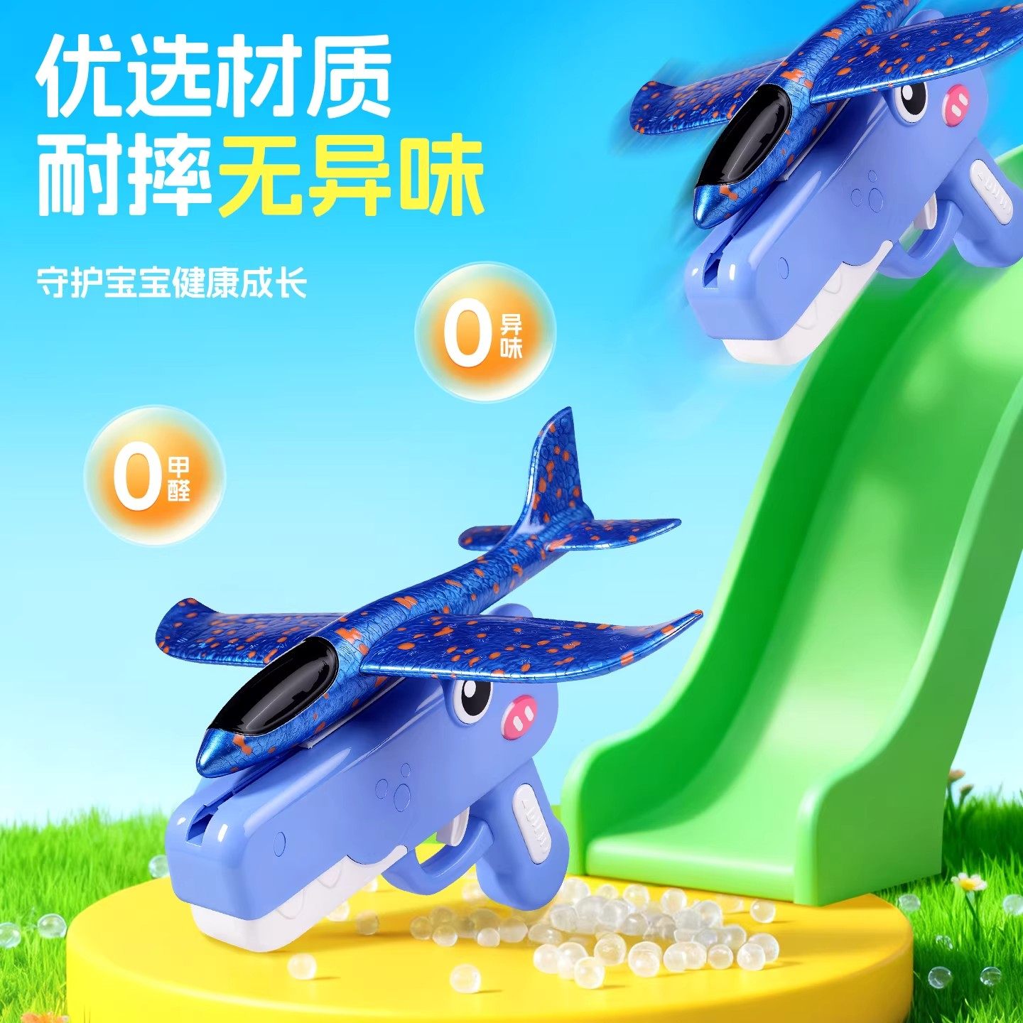 儿童恐龙弹射泡沫飞机手持发射枪户外耐摔手抛飞天滑翔机男孩玩具