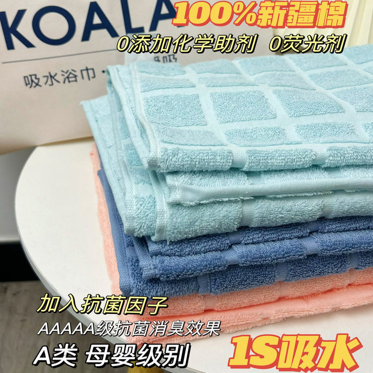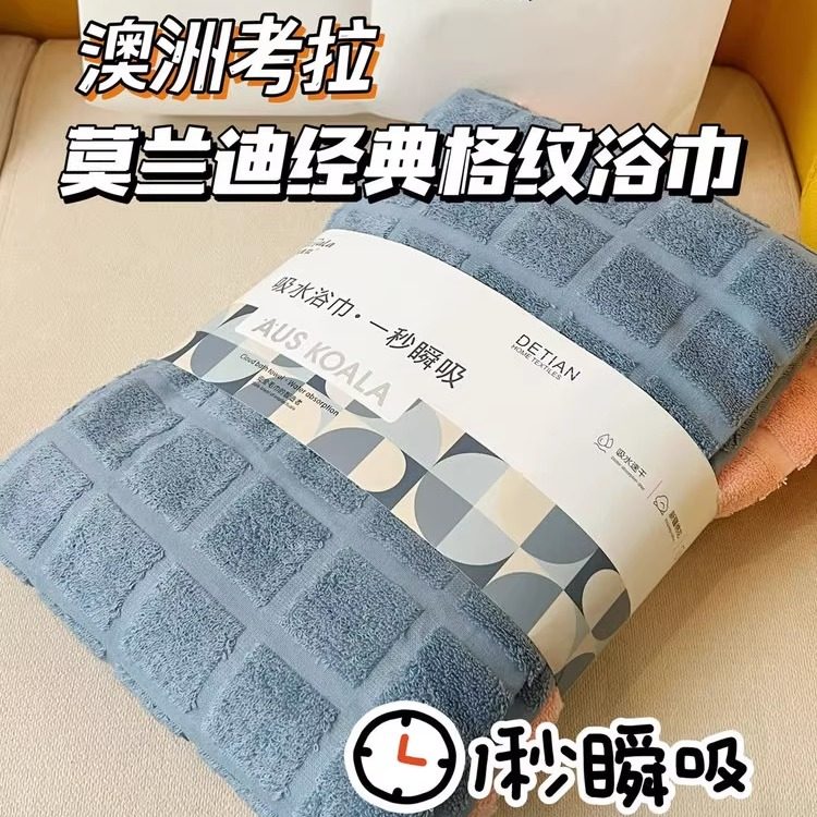 澳洲考拉浴巾超柔软吸水单条装格纹男女家用全棉纯棉吸水速干毛巾