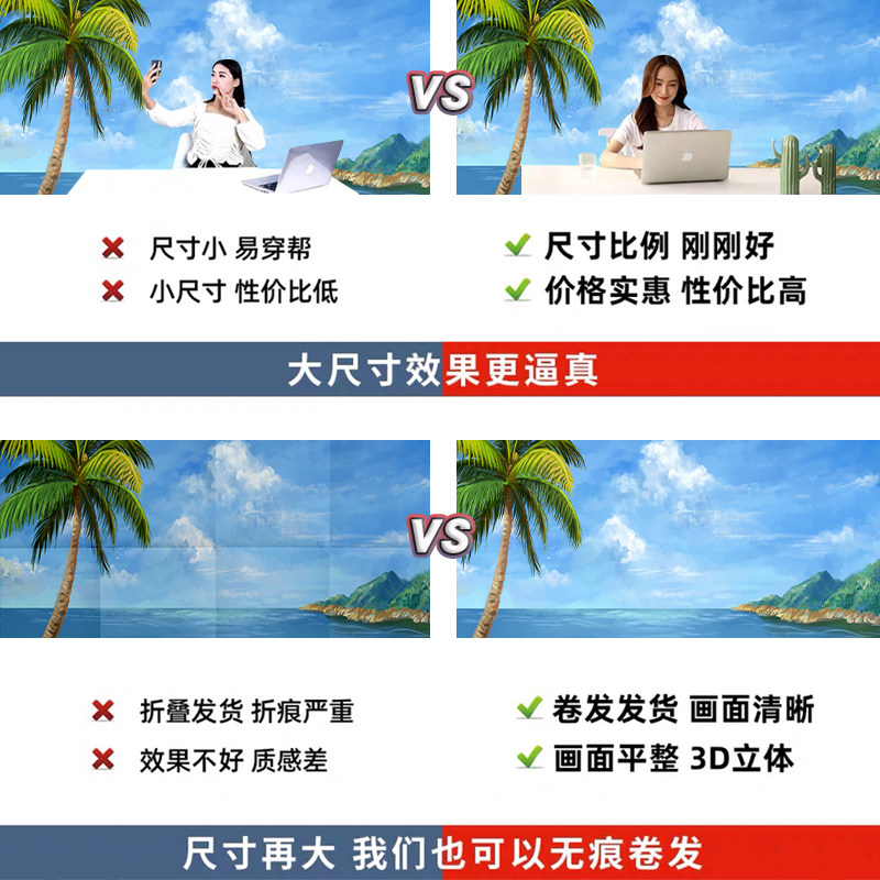 夏季海边沙滩儿童摄影直播背景布场景布置高级感网红拍照区男女主播抖音快手3d立体壁纸画自然风景直播间