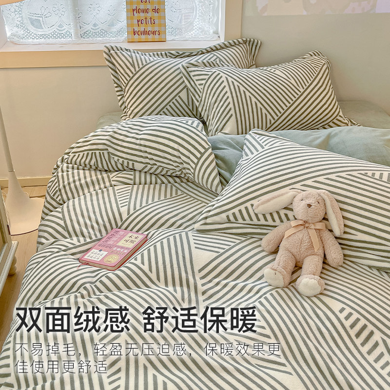 秋冬季加厚四件套牛奶绒被套床单双面加绒被罩床笠学生宿舍三件套