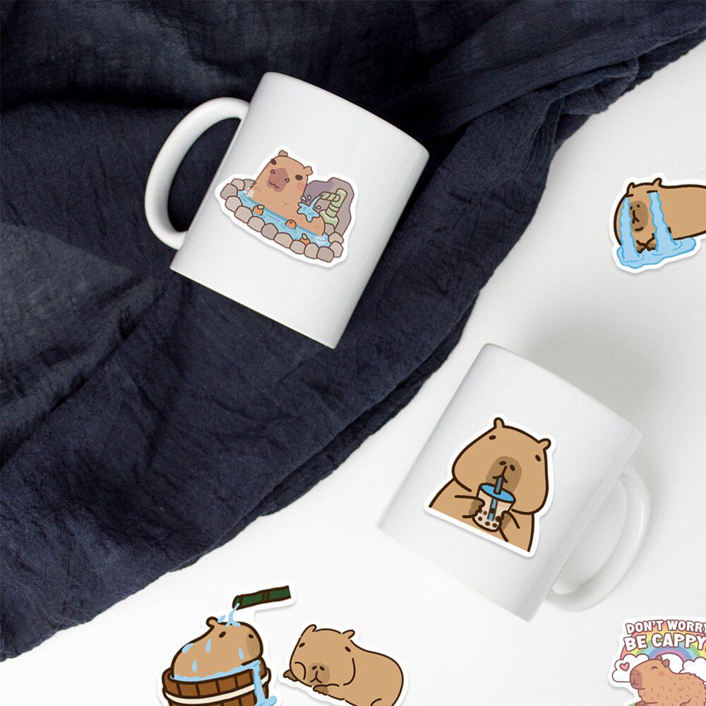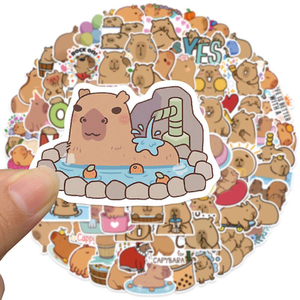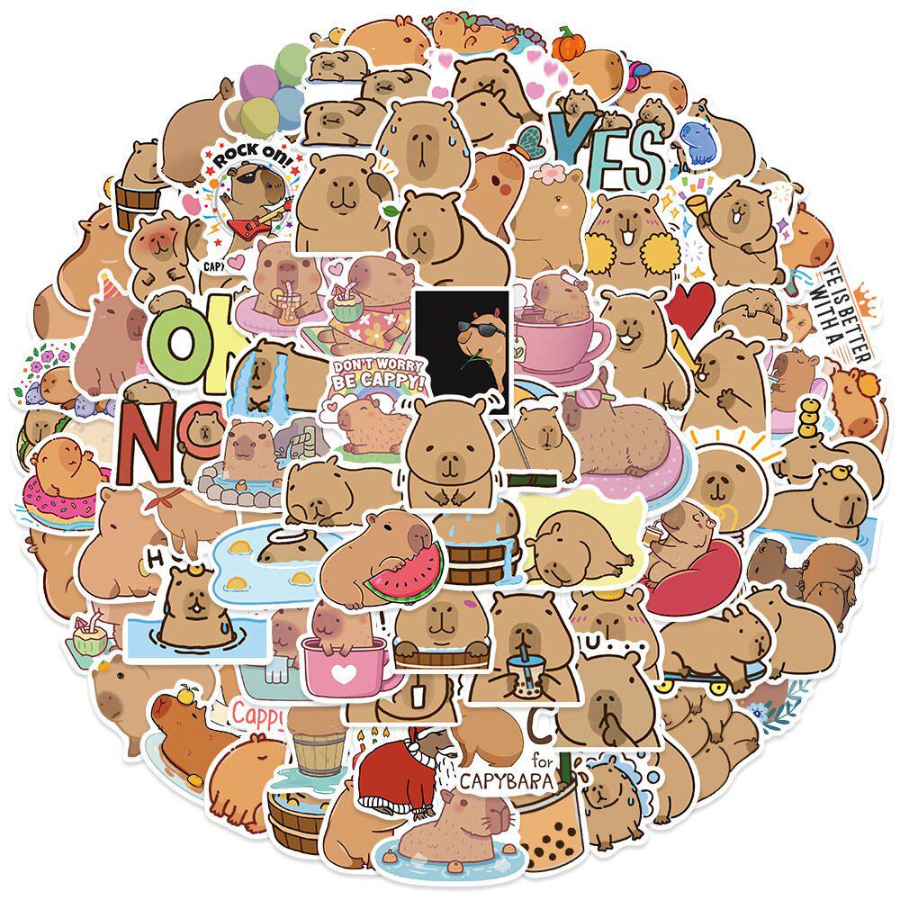 100张跨境热卖卡通水豚涂鸦贴纸滑板车吉他拉杆箱水杯diy装饰贴画