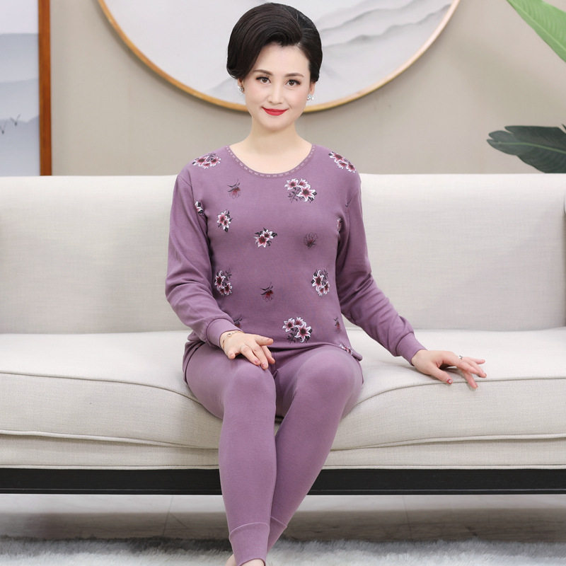 中老年秋衣秋裤女套装纯棉老人棉毛衫女士保暖内衣全棉打底半高领