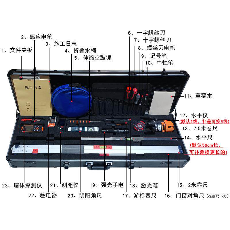 验房量房工具箱装修公司质检箱2米靠尺水平尺套装塞尺角尺空鼓锤