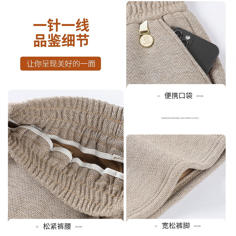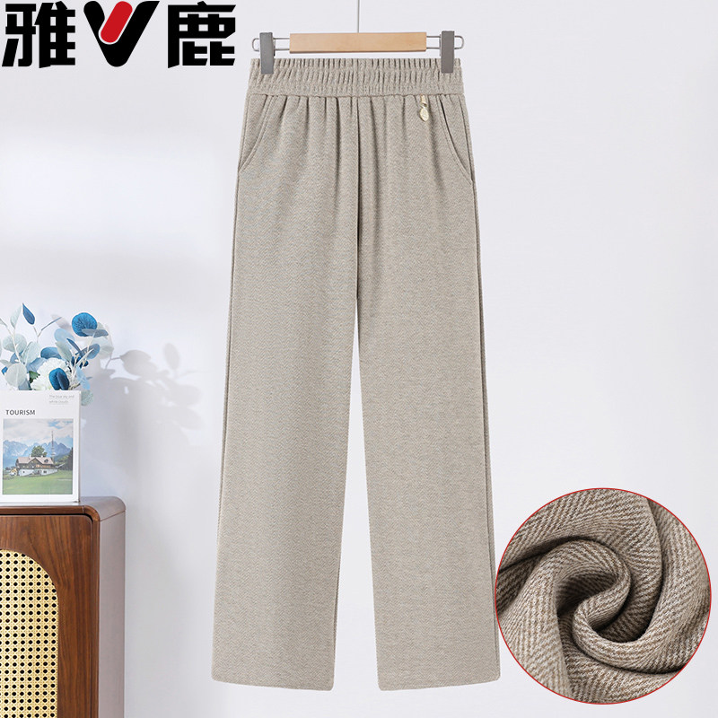 雅鹿妈妈裤子春装休闲阔腿直筒裤中老年女士松紧腰时尚春秋毛呢裤