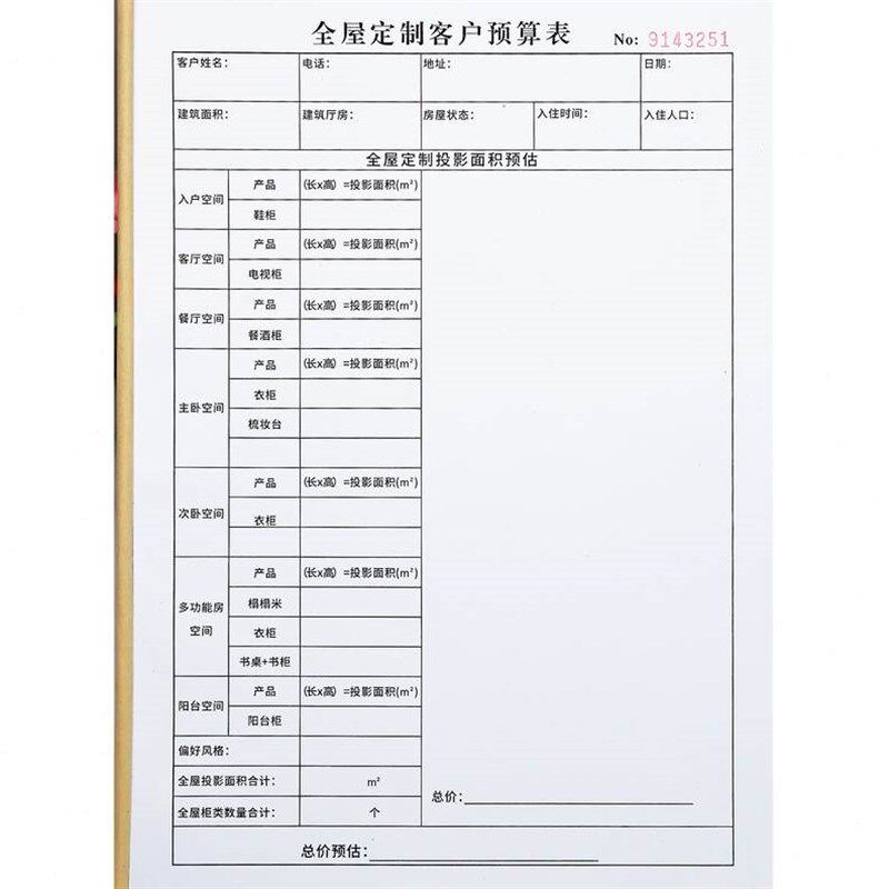 全屋定制客户预算表定制表单家居家具整体衣柜橱柜定做造价报价单