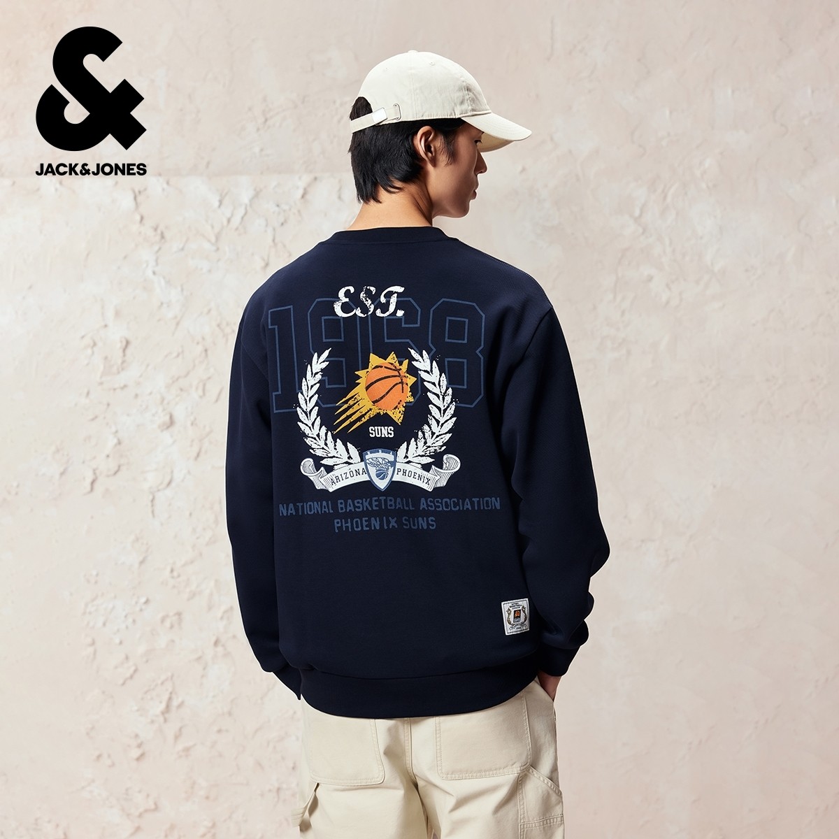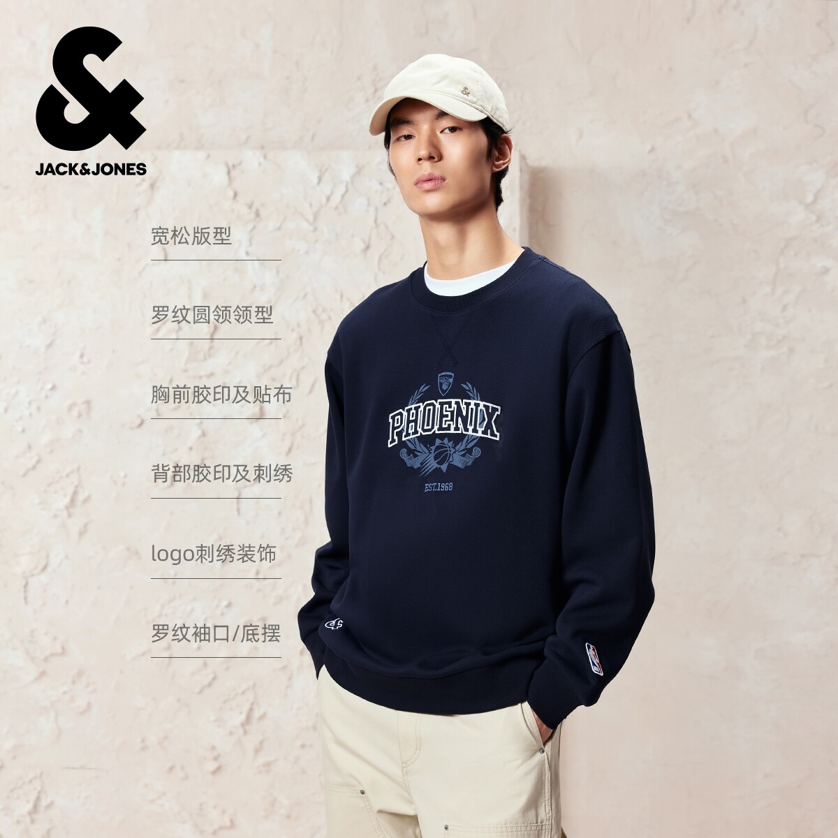 杰克琼斯男装秋冬卫衣2025年新款NBA联名立体字母胶印刺绣长袖