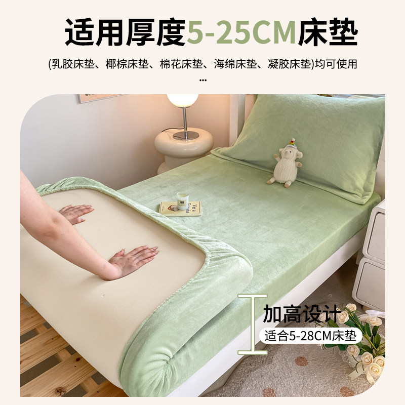 加绒牛奶绒床笠单件秋冬加厚珊瑚绒床单三件套毛绒床垫保护罩单人