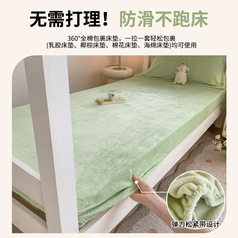 冬季加绒学生宿舍珊瑚牛奶绒床笠单件90X200保护床罩单人床单套罩