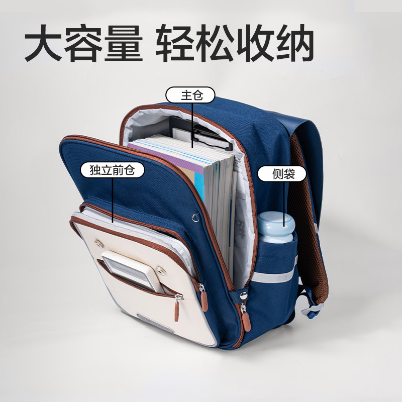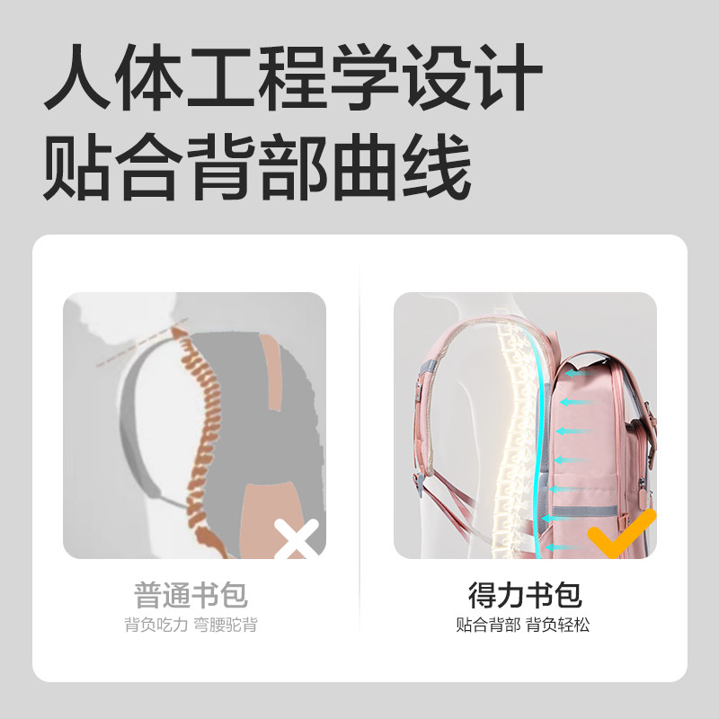 得力小学生书包学院护脊儿童包2025年新款一二三到六年级男女孩上学轻便防泼水背包英伦学院风透气文具收纳包