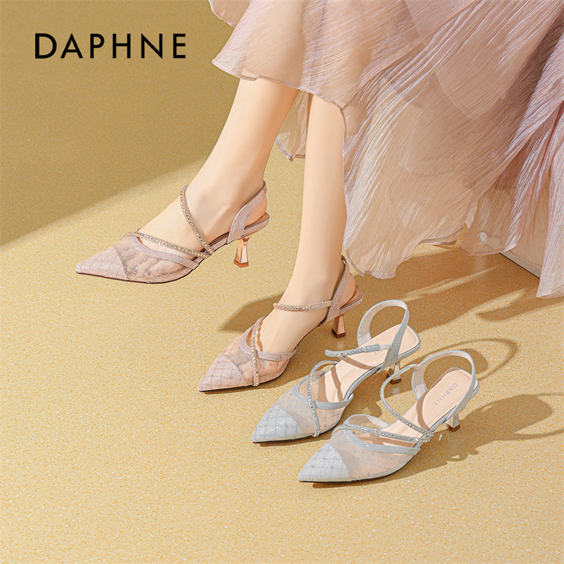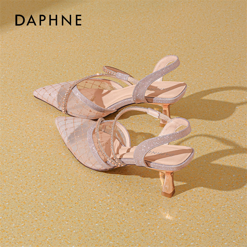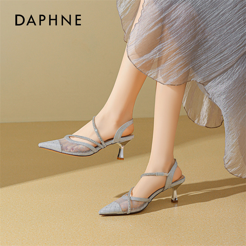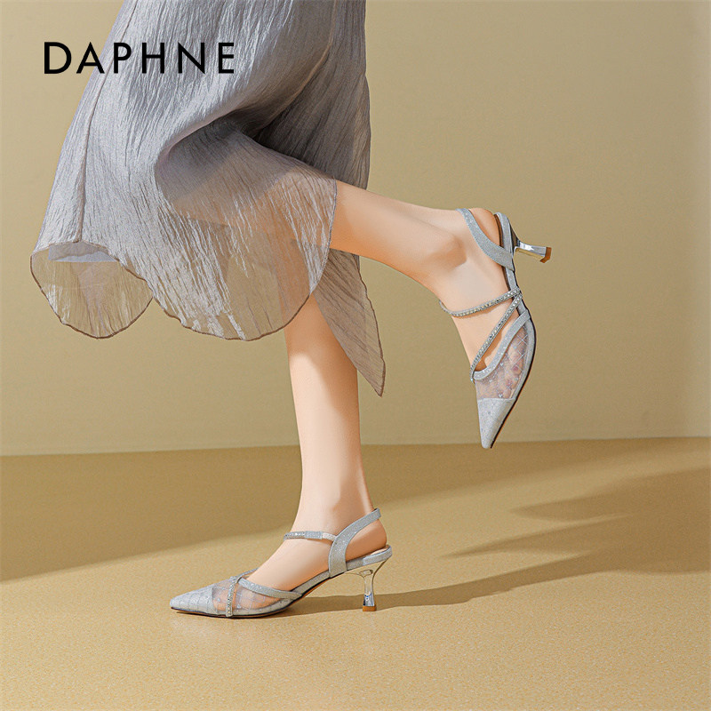 达芙妮银色凉鞋女2026春夏新款法式名媛高跟鞋配裙子网纱包头凉拖