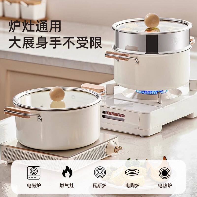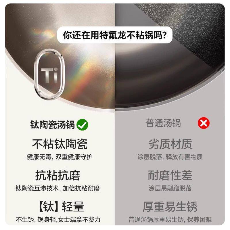 钛陶瓷汤锅炖锅家用煮汤锅蒸锅煲汤双耳锅钛锅无氟涂层电磁炉加厚