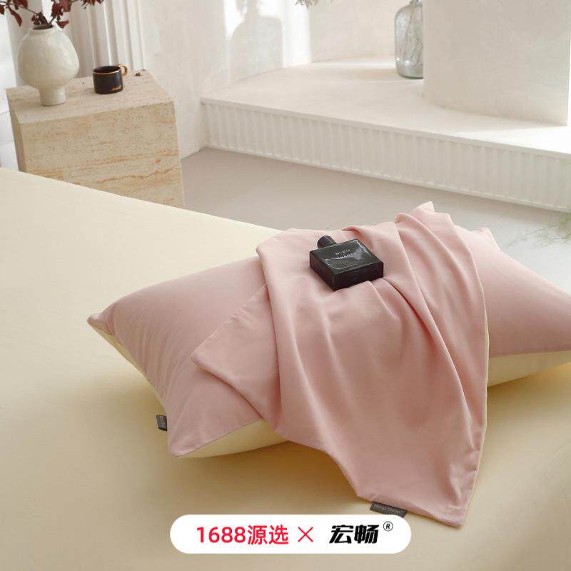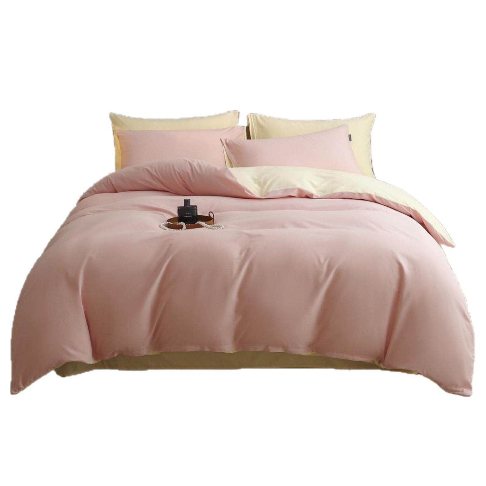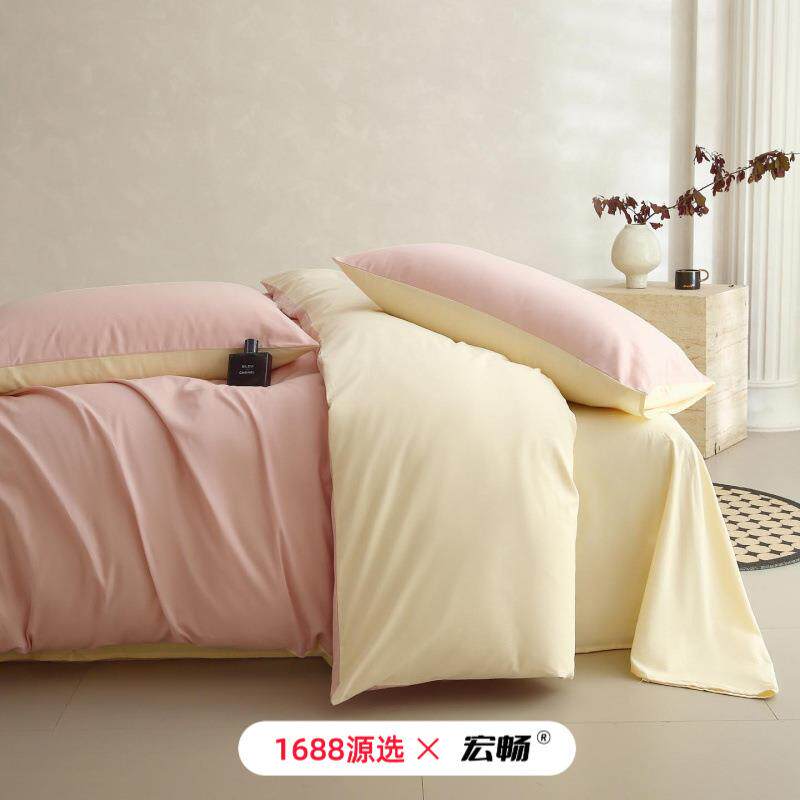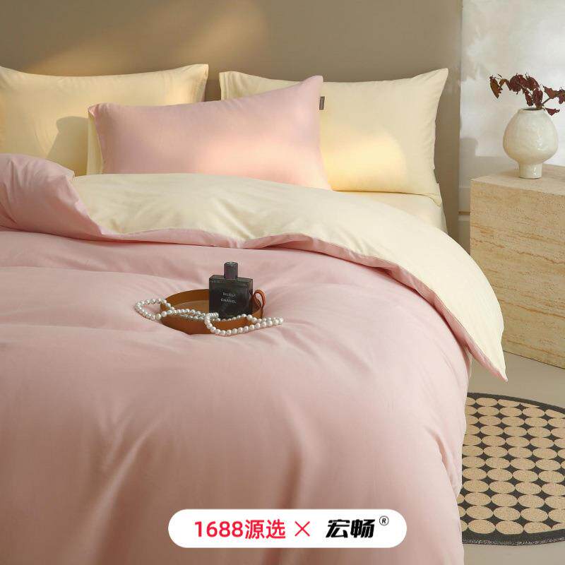A类秋冬60支全棉加厚磨毛纯色四件套纯棉简约亲肤保暖双拼色套件